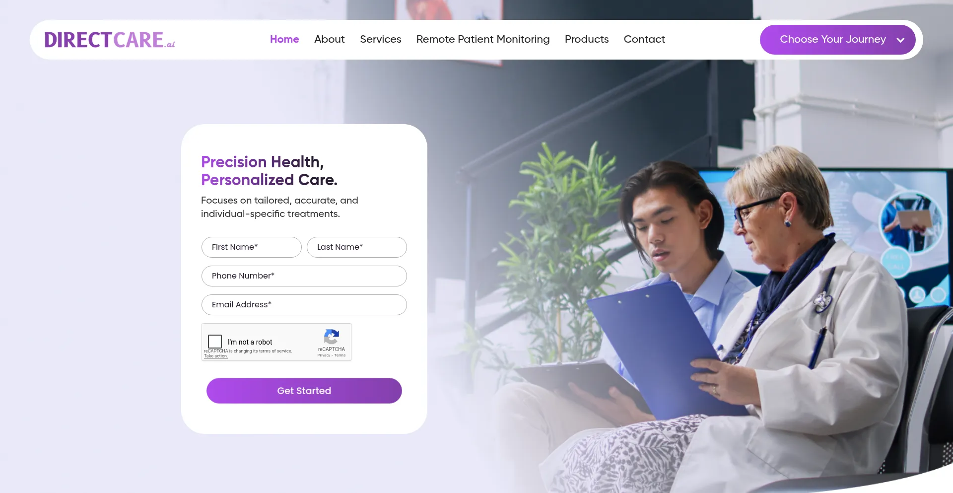该网站实现数据收集表单,请求个人信息,包括姓名、电子邮件地址、电话号码或其他敏感详细信息。用户应验证 directcareai.com 的合法性并在提交个人数据前查看隐私政策。
