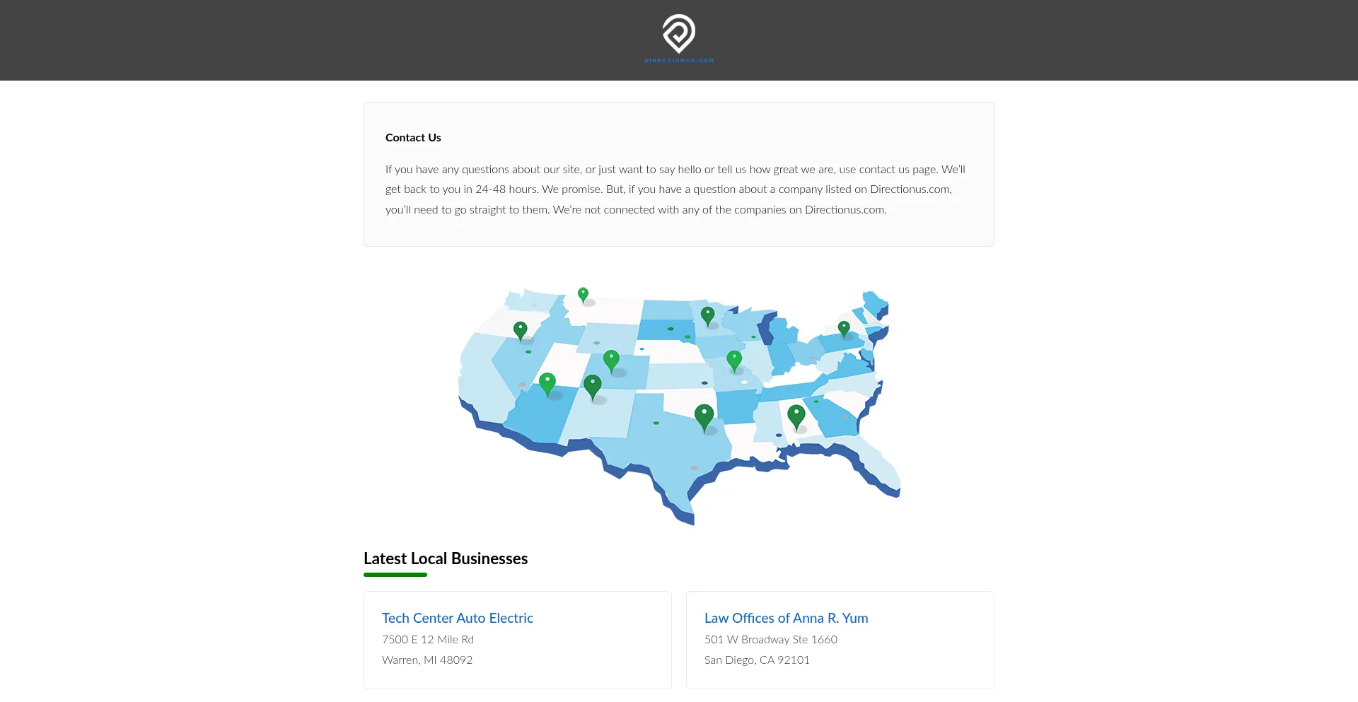 Directionus.com is online directory for local businesses in the United States. You can find detailed information about businesses in their area including maps and driving direct...