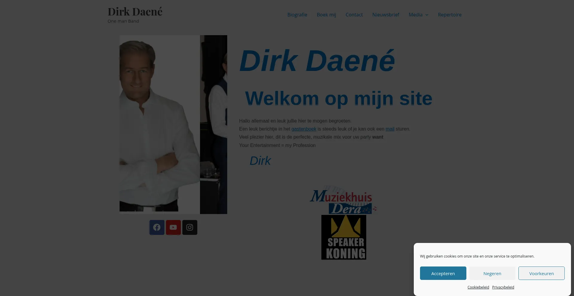 网站上存在社交媒体链接表明 dirkdaene.be 在社交媒体上维护官方账户,这是可信度和参与度的积极信号。