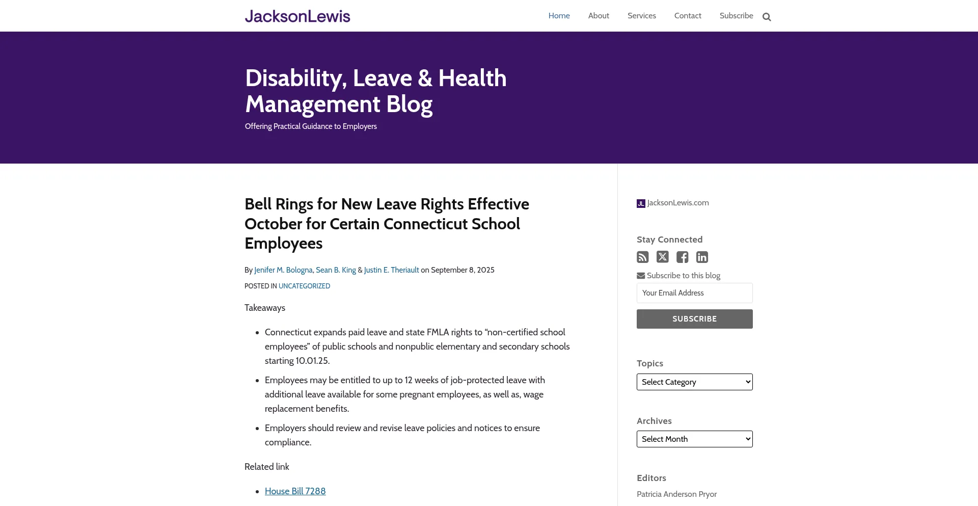 Disability, Leave & Health Management Blog | Jackson Lewis P.C.|disability|leave|healthcare|fmla
