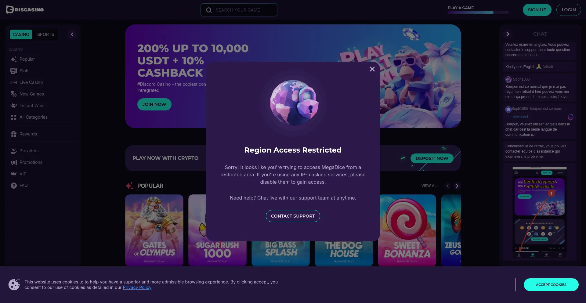 Discasino.com 运营以低可信度和不可信操作做法为特征的在线赌博平台,可能损害玩家安全和财务利益。
