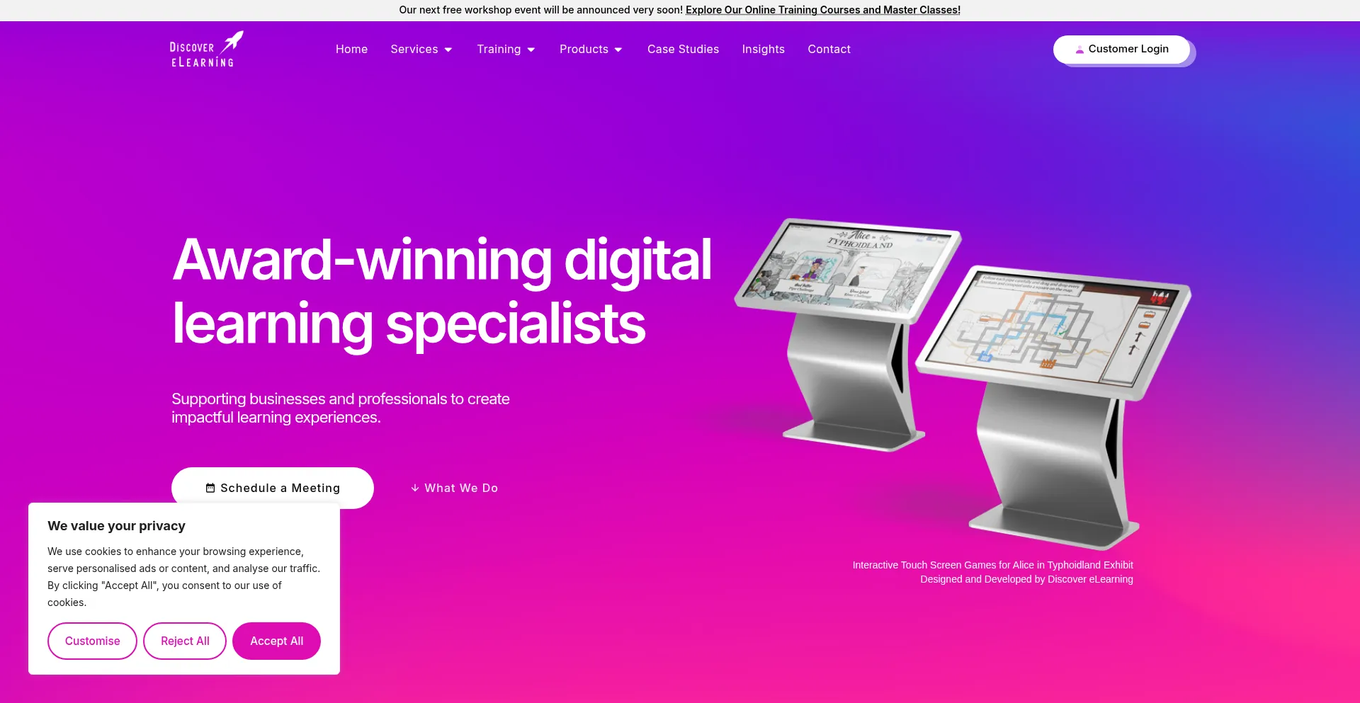 该网站实现符合GDPR或CCPA等隐私法规的cookie同意机制。这表明 discoverelearning.com 遵守数据保护标准并为用户提供对个人数据收集实践的控制。
