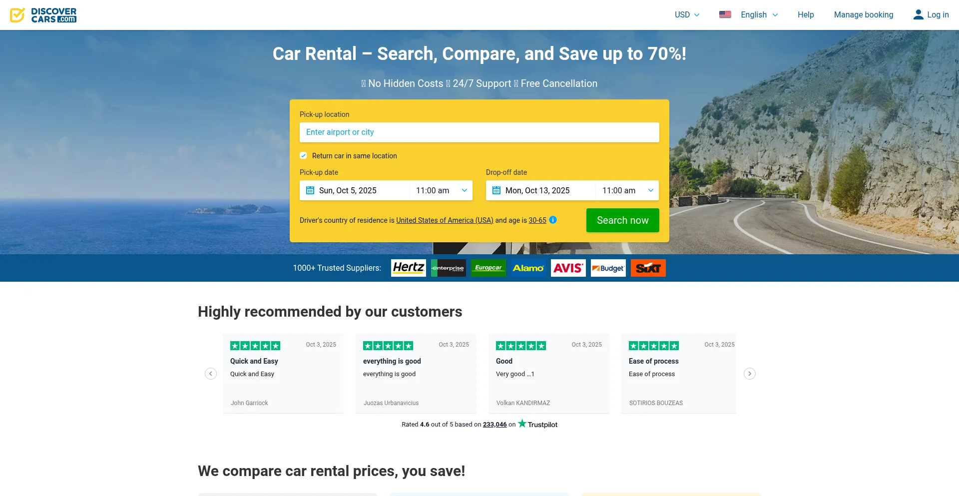 Best Car Rental Deals with Free Cancellation, Compare & Save! | Discover Cars