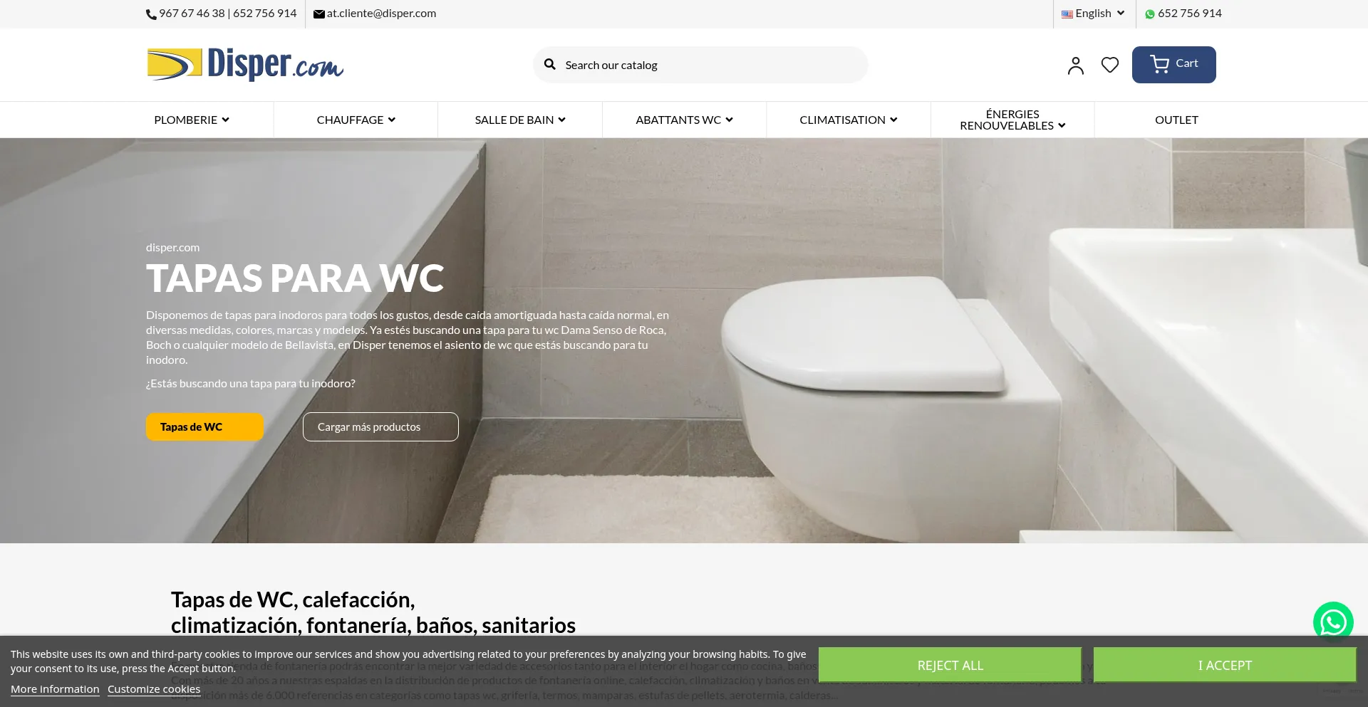 Sale of products of air conditioning, heating, plumbing, swimming pools, toilets and bathroom furniture. At the best prices!