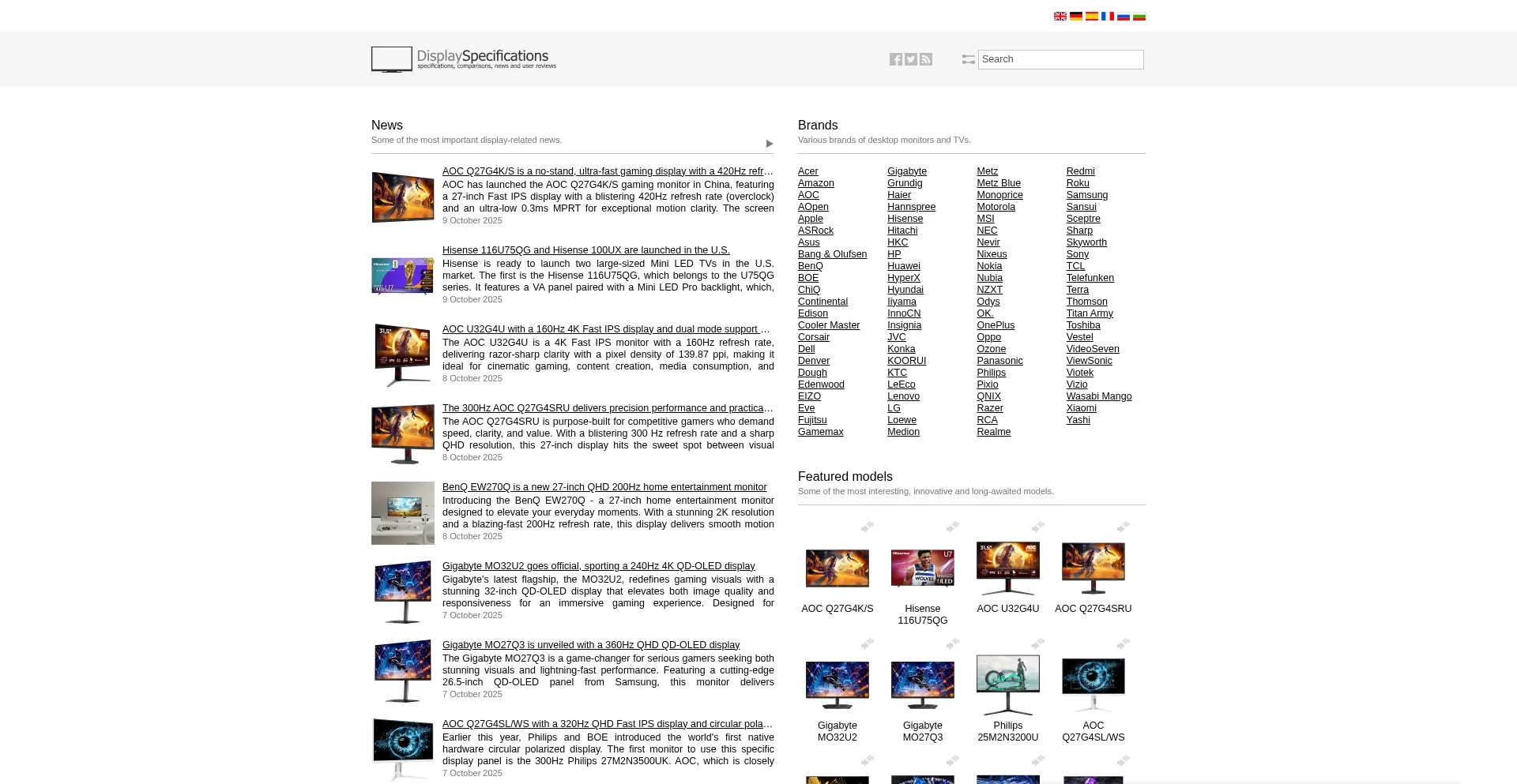 Detailed specifications of desktop monitors, smart TVs and other types of displays. The latest display-related news. Comparisons of the specifications of different models, user ...