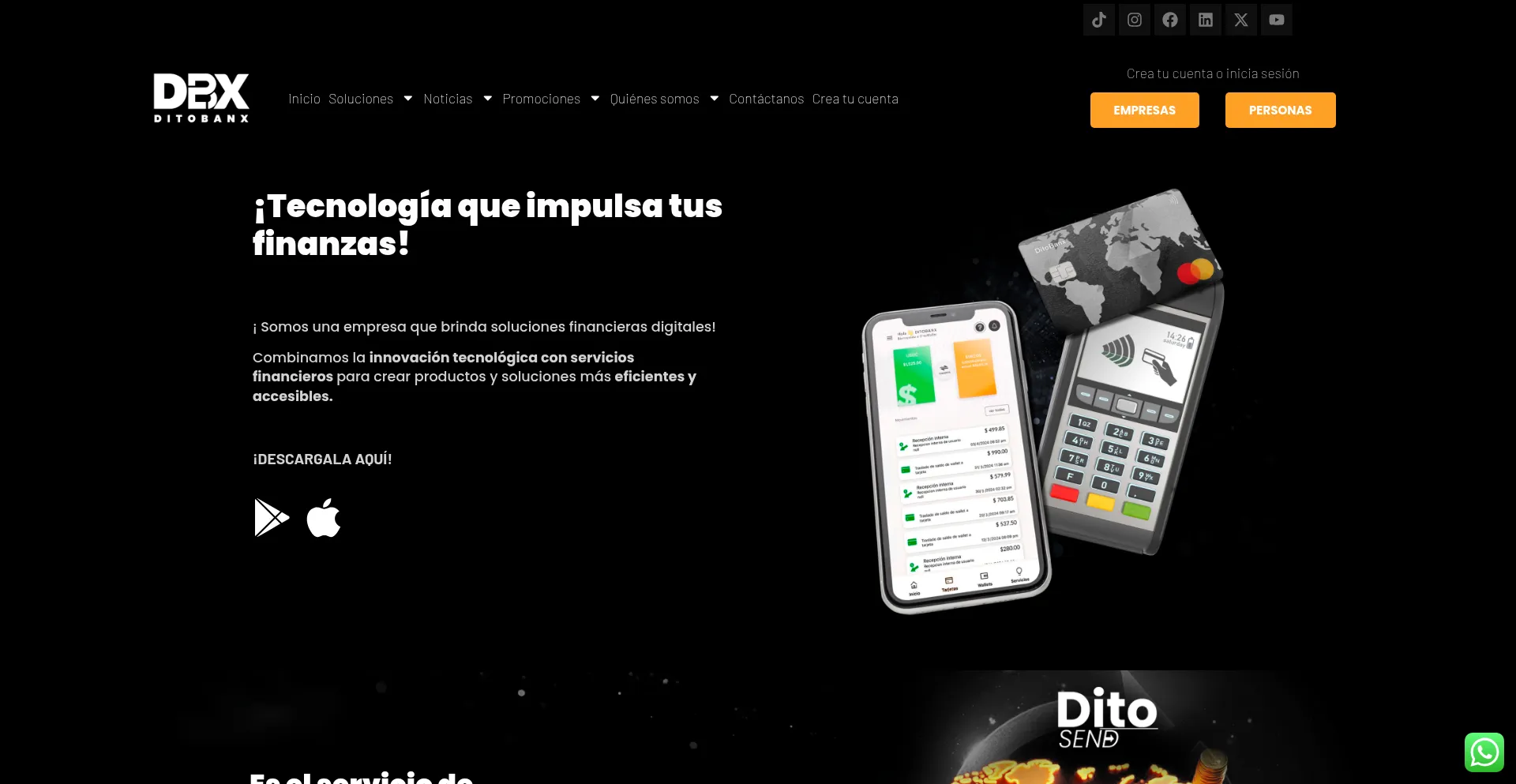 网站上存在社交媒体链接表明 ditobanx.com 在社交媒体上维护官方账户,这是可信度和参与度的积极信号。
