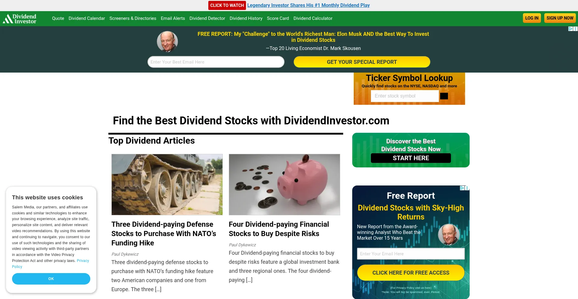 Industry-leading analysis tools for profitable dividend investing, including stock screening, ex-dividend dates, dividend history and best dividend stocks.