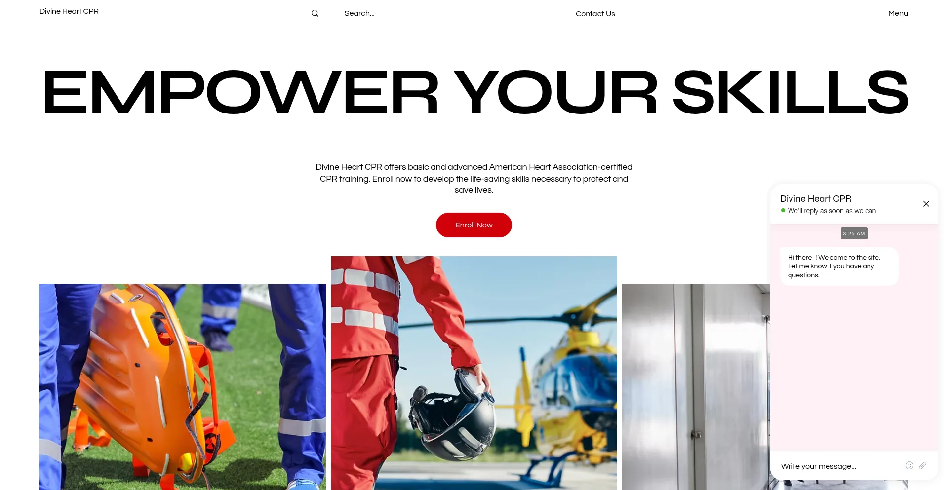 该网站实现数据收集表单,请求个人信息,包括姓名、电子邮件地址、电话号码或其他敏感详细信息。用户应验证 divineheartcpr.com 的合法性并在提交个人数据前查看隐私政策。