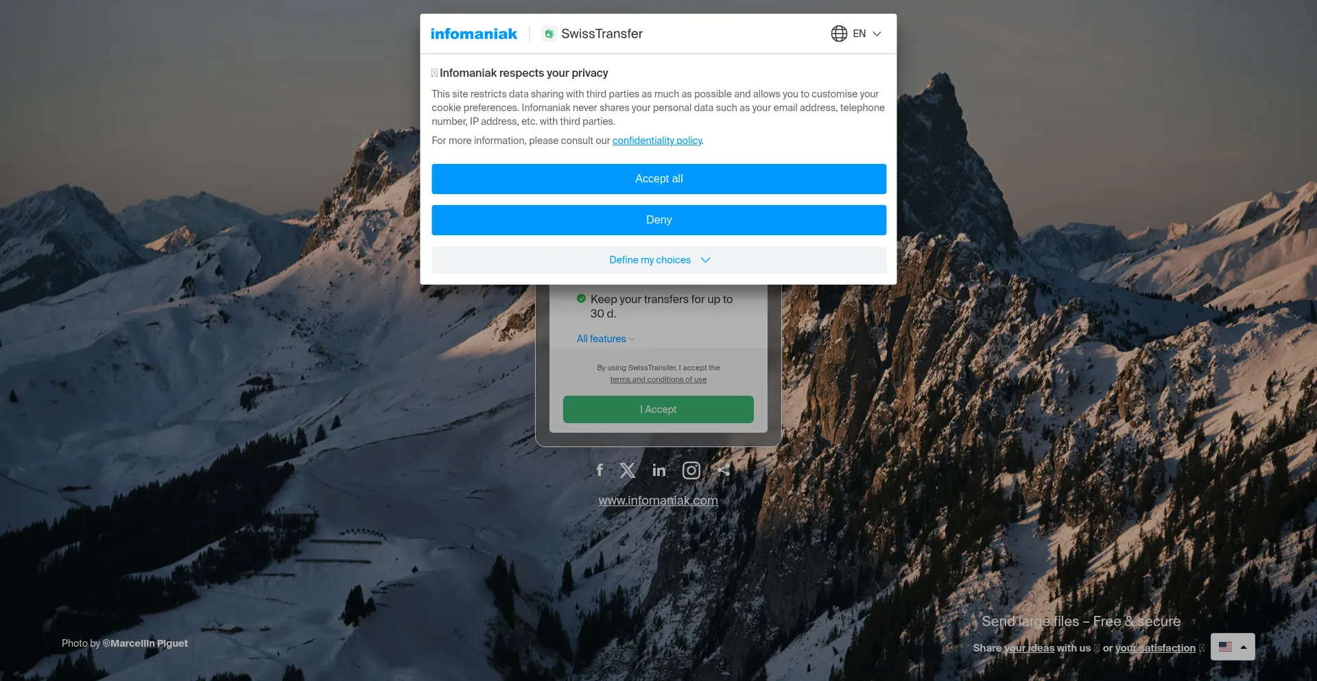 Send up to 50 GB - Free and without registration - Keep your transfers for up to 30 days.