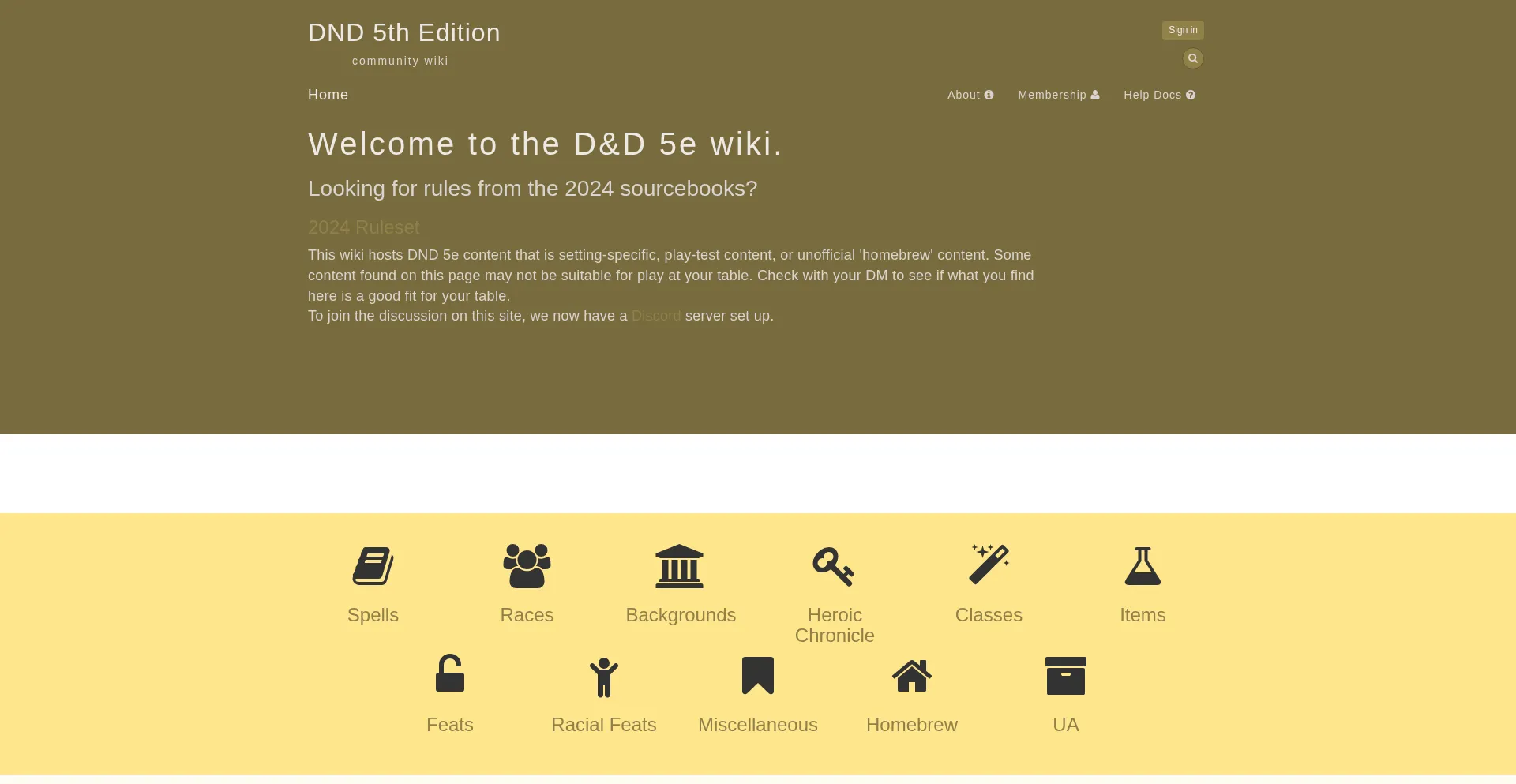 This wiki hosts DND 5e content that is setting-specific, play-test content, or unofficial 'homebrew' content.