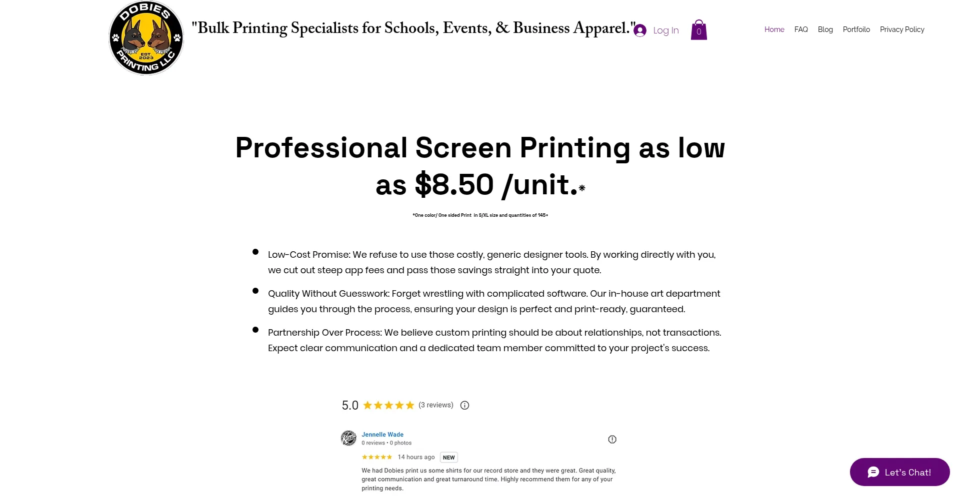 Dobies Printing is a locally (Indiana) owned screen printing shop specializing in small to medium sized runs of printed shirts for small businesses, event and bands.
