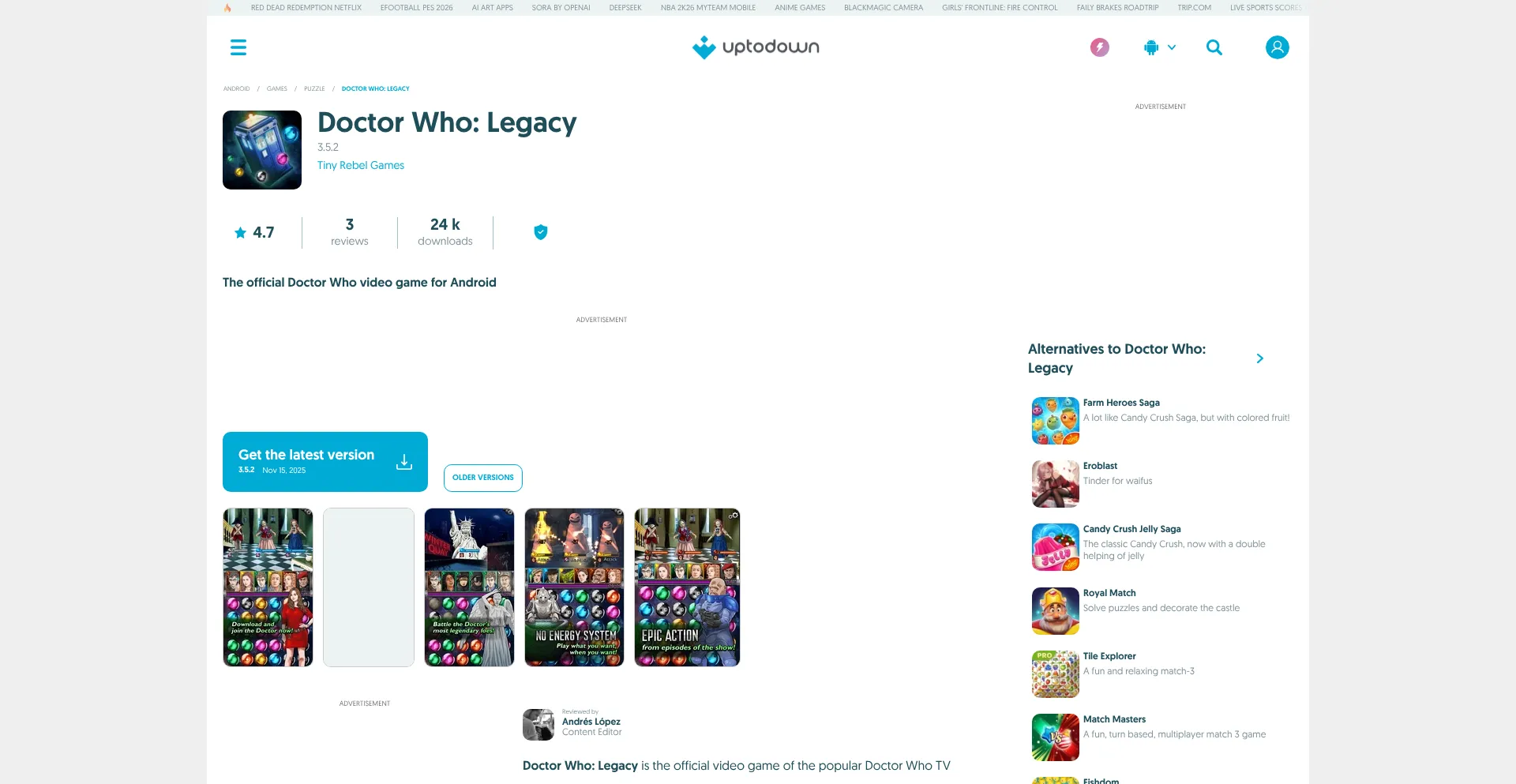Download the APK of Doctor Who: Legacy for Android for free. The official Doctor Who video game for Android. Doctor Who: Legacy is the official video game...