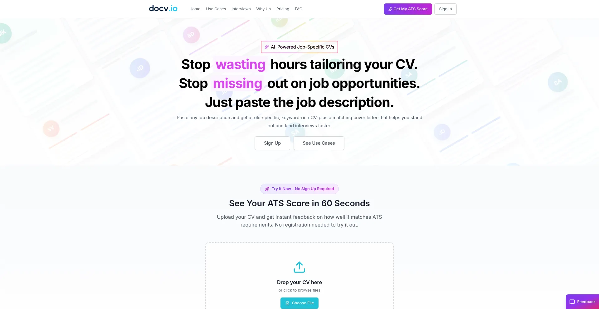 Generate job‑specific, ATS‑friendly CVs with AI. Tailor bullet points to job descriptions, export polished PDFs, and land more interviews.