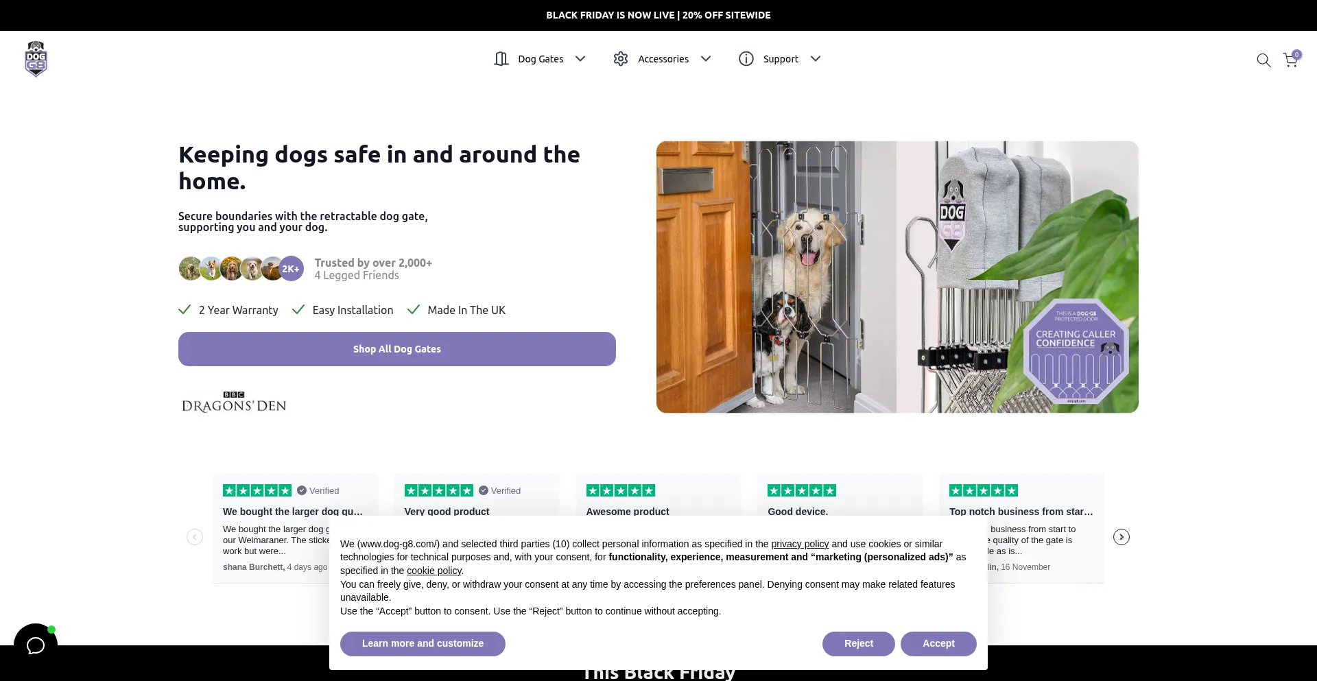Keeping dogs safe in and around the home. Secure boundaries with the innovative, retractable dog gate. Supporting you and your dog.
