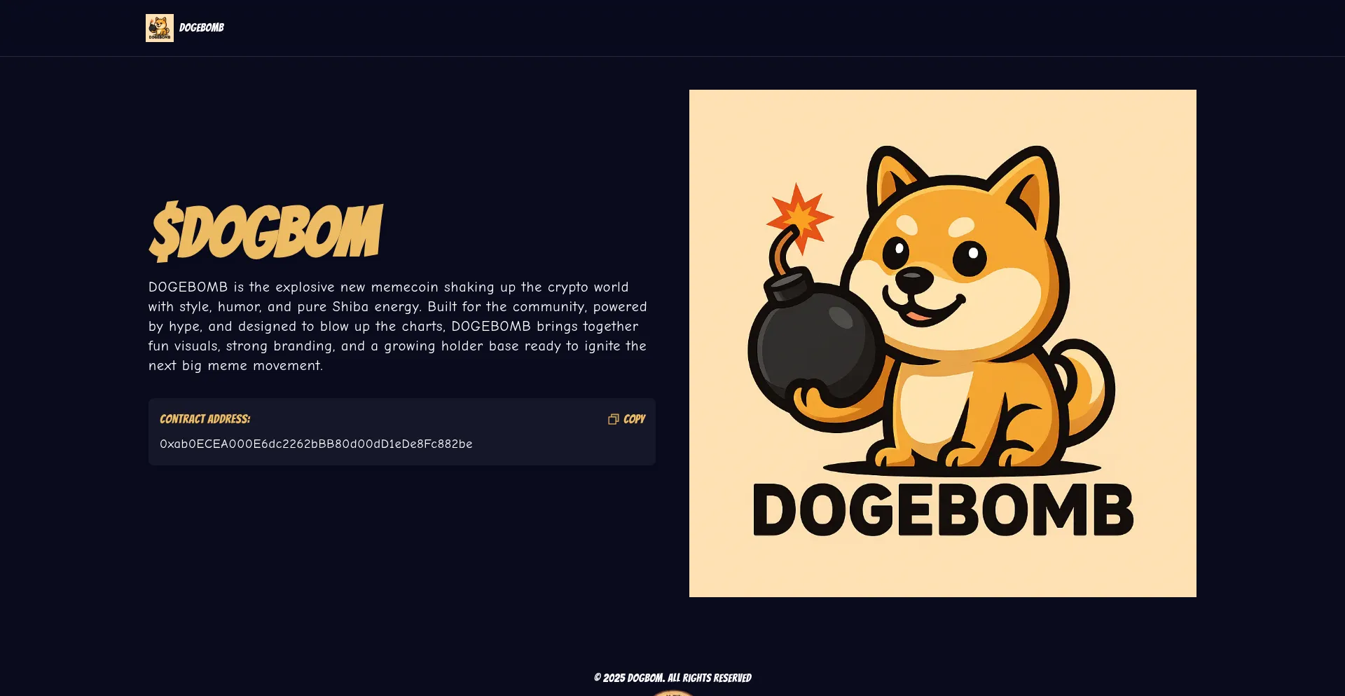 DOGEBOMB is the explosive new memecoin shaking up the crypto world with style, humor, and pure Shiba energy. Built for the community, powered by hype, and designed to blow up th...