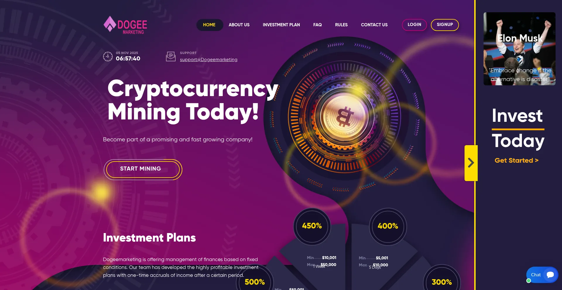 网站 dogeemarketing.com 可能提供云挖矿服务或加密货币挖矿投资。一些平台提供合法的挖矿租赁服务,而其他平台可能使用虚假的挖矿仪表板来显示无法提取的虚拟收益。