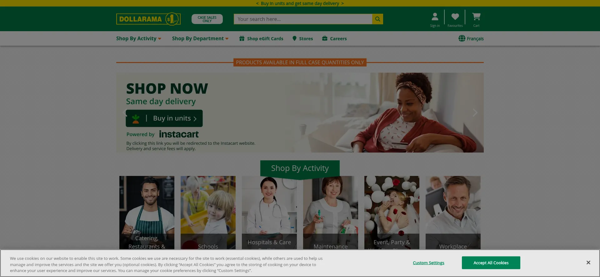 该网站实现符合GDPR或CCPA等隐私法规的cookie同意机制。这表明 dollarama.com 遵守数据保护标准并为用户提供对个人数据收集实践的控制。