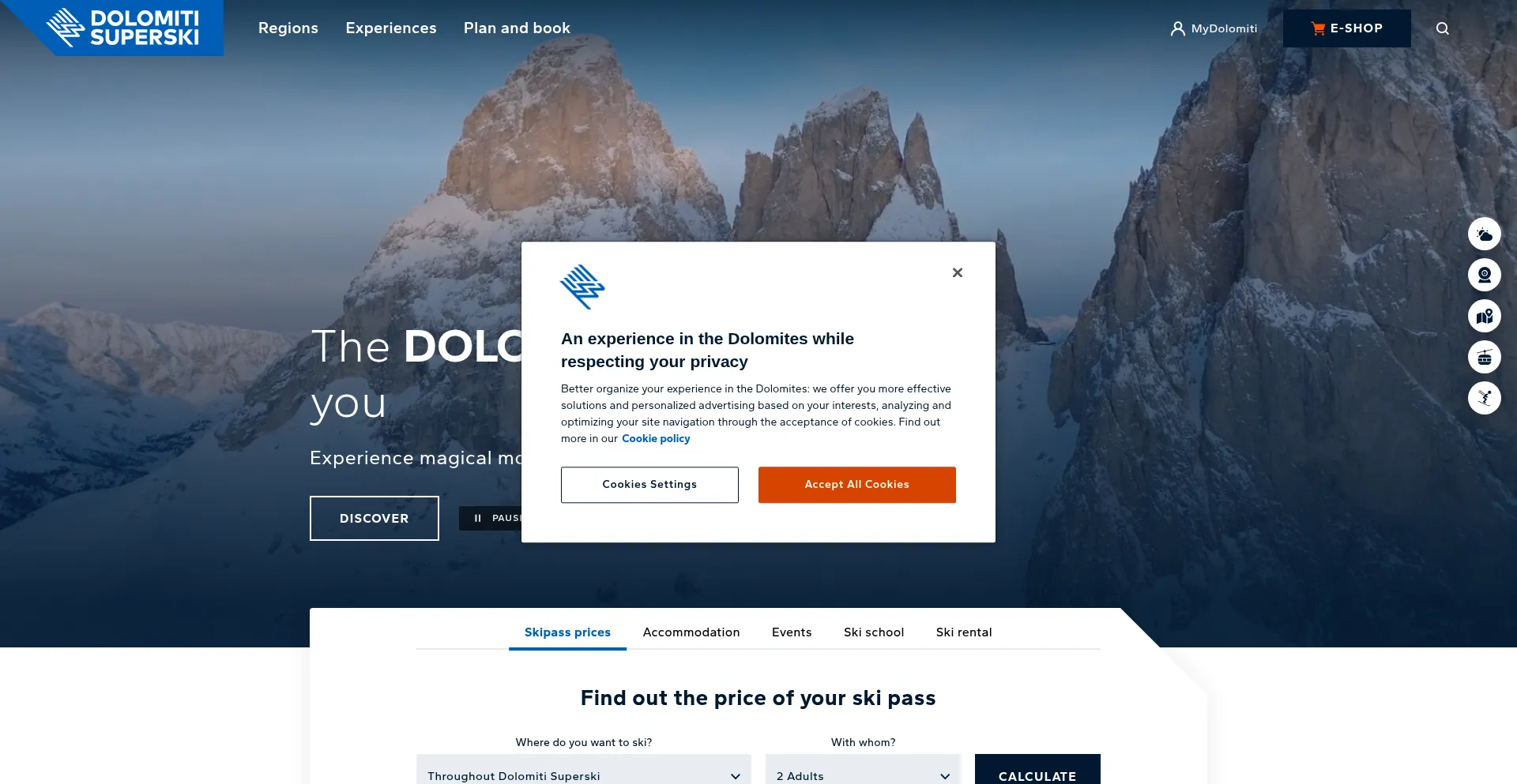 该网站实现符合GDPR或CCPA等隐私法规的cookie同意机制。这表明 dolomitisuperski.com 遵守数据保护标准并为用户提供对个人数据收集实践的控制。