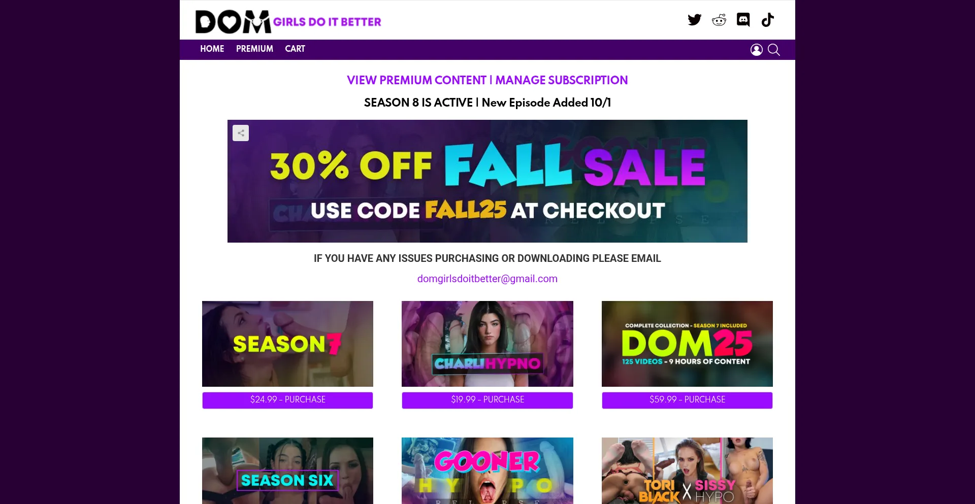 分析表明 domgirlsdoitbetter.com 作为电子商务平台运营,促进商品或服务的在线交易。该网站实现了购物车功能、支付处理系统和产品目录功能,这些是商业零售运营的典型特征。