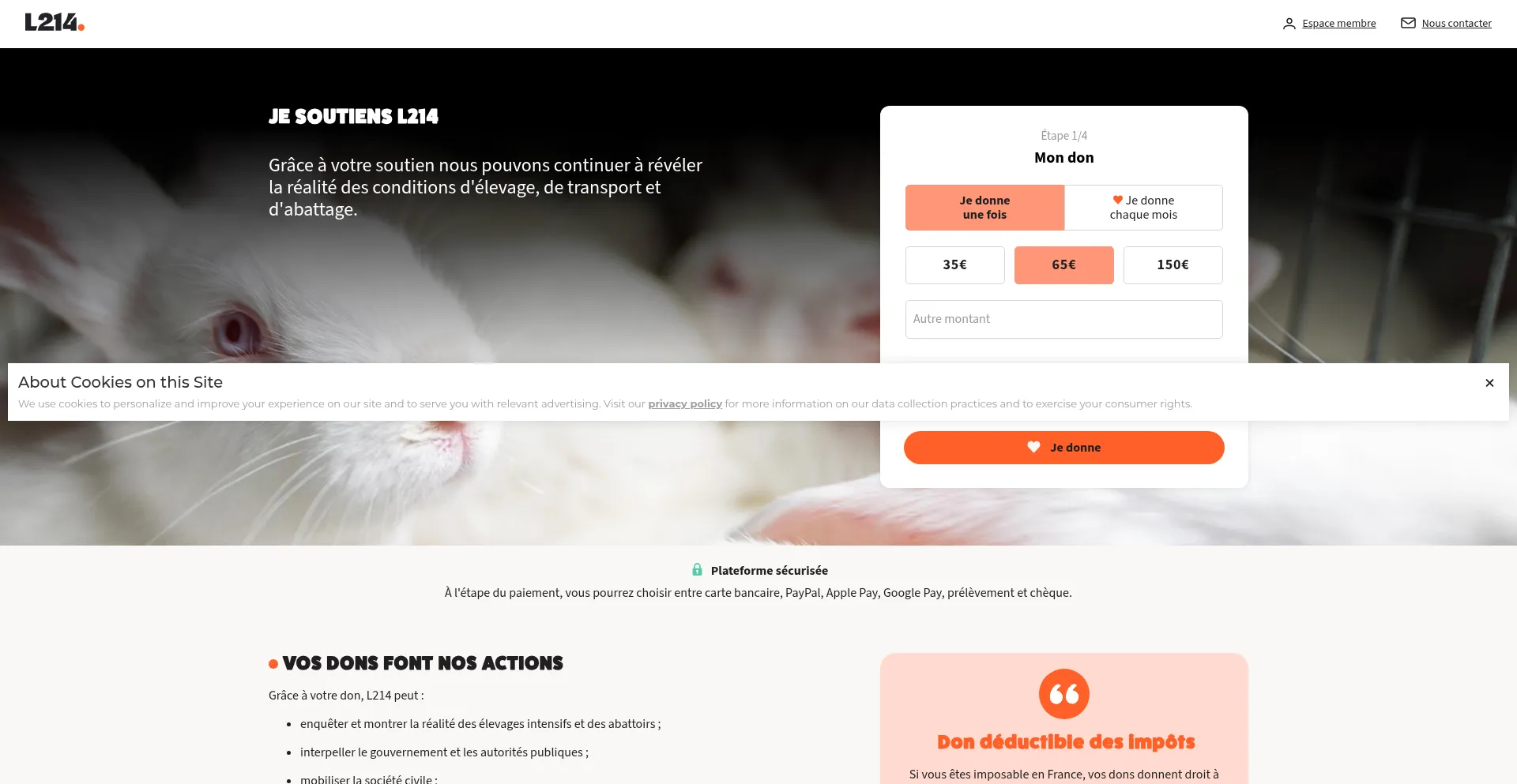 Soutenez les enquêtes et les actions de L214 pour la protection des animaux d'élevage. Votre don vous permet d'agir concrètement pour les aider ! Ensemble, nous faisons recul...