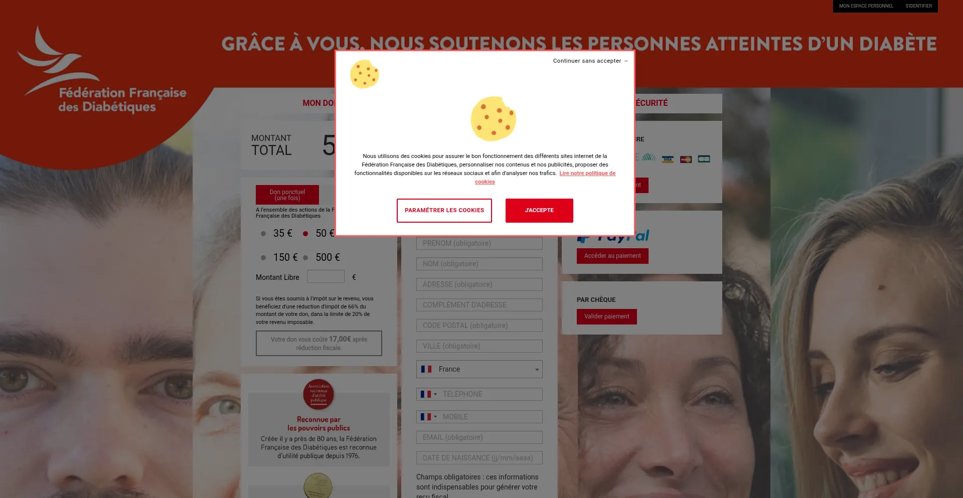 该网站实现符合GDPR或CCPA等隐私法规的cookie同意机制。这表明 donateurs.federationdesdiabetiques.org 遵守数据保护标准并为用户提供对个人数据收集实践的控制。