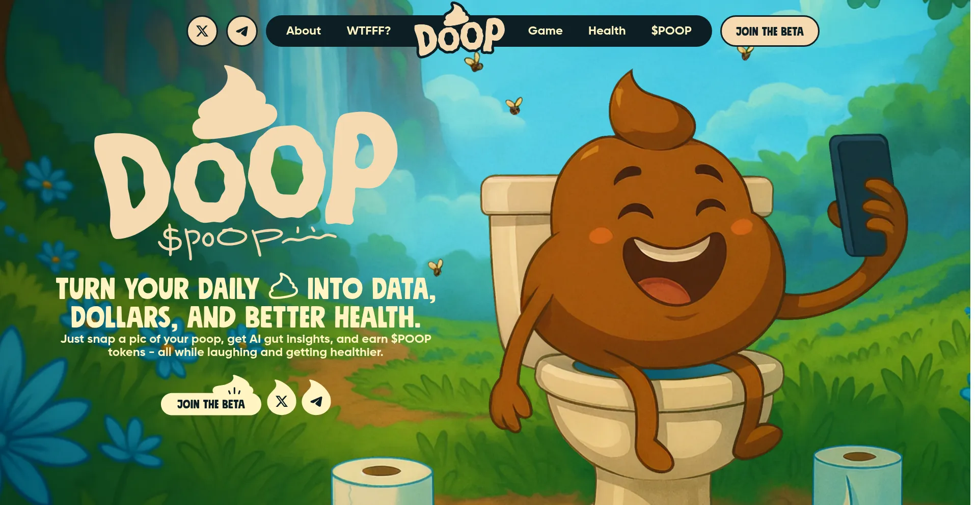 DOOP - Turn your daily bathroom breaks into data, dollars, and better health. Snap a pic of your poop, get AI gut insights, and earn $POOP tokens while improving your digestive ...