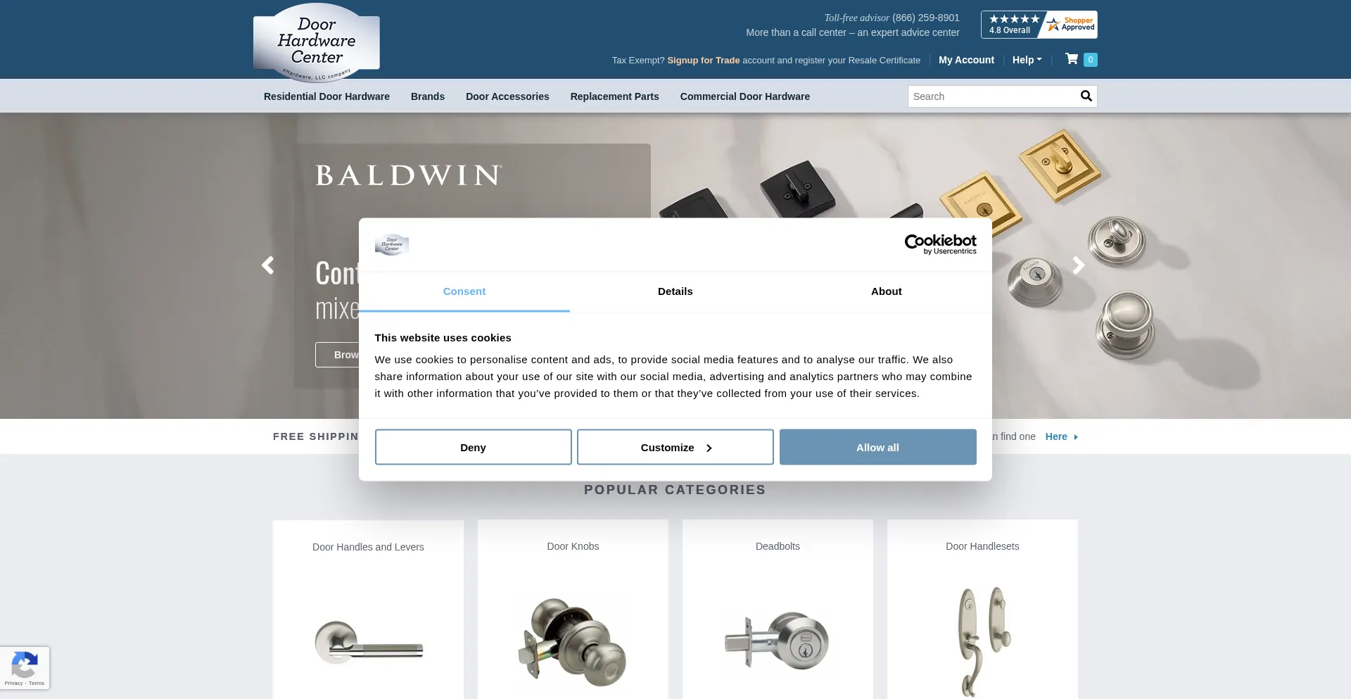 该网站实现符合GDPR或CCPA等隐私法规的cookie同意机制。这表明 doorhardwarecenter.com 遵守数据保护标准并为用户提供对个人数据收集实践的控制。