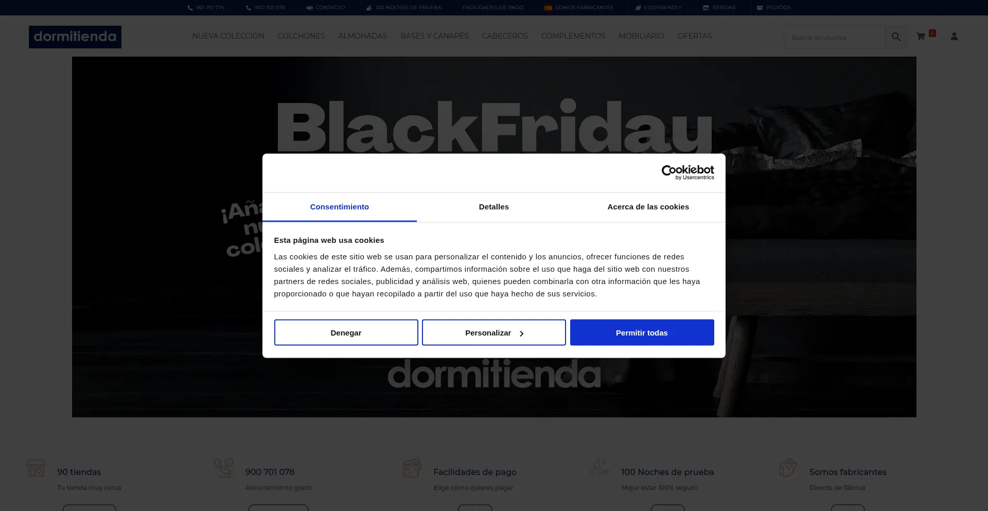 该网站实现符合GDPR或CCPA等隐私法规的cookie同意机制。这表明 dormitienda.com 遵守数据保护标准并为用户提供对个人数据收集实践的控制。