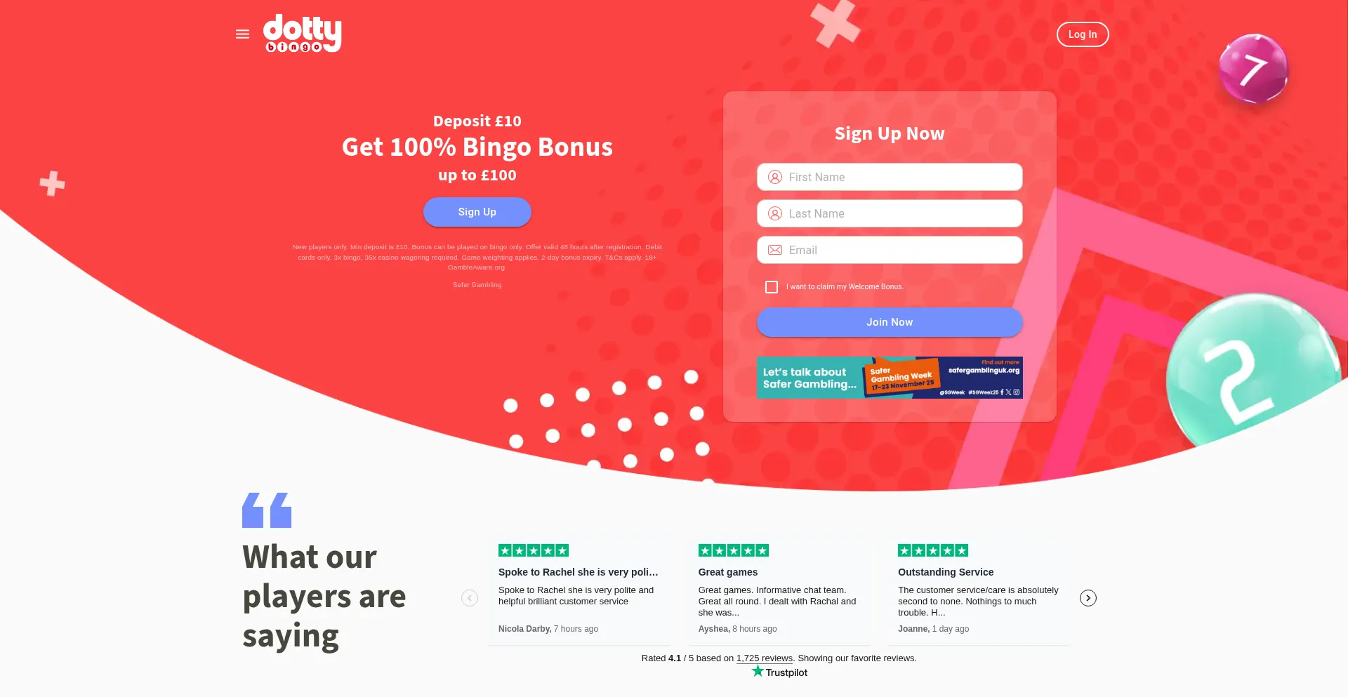At Dotty Bingo you get Free spins on slots! T&Cs Apply