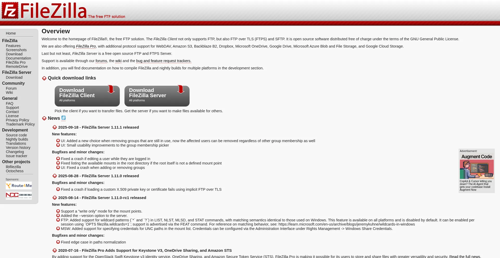 FileZilla - The free FTP solution for both client and server. Filezilla is open source software distributed free of charge.