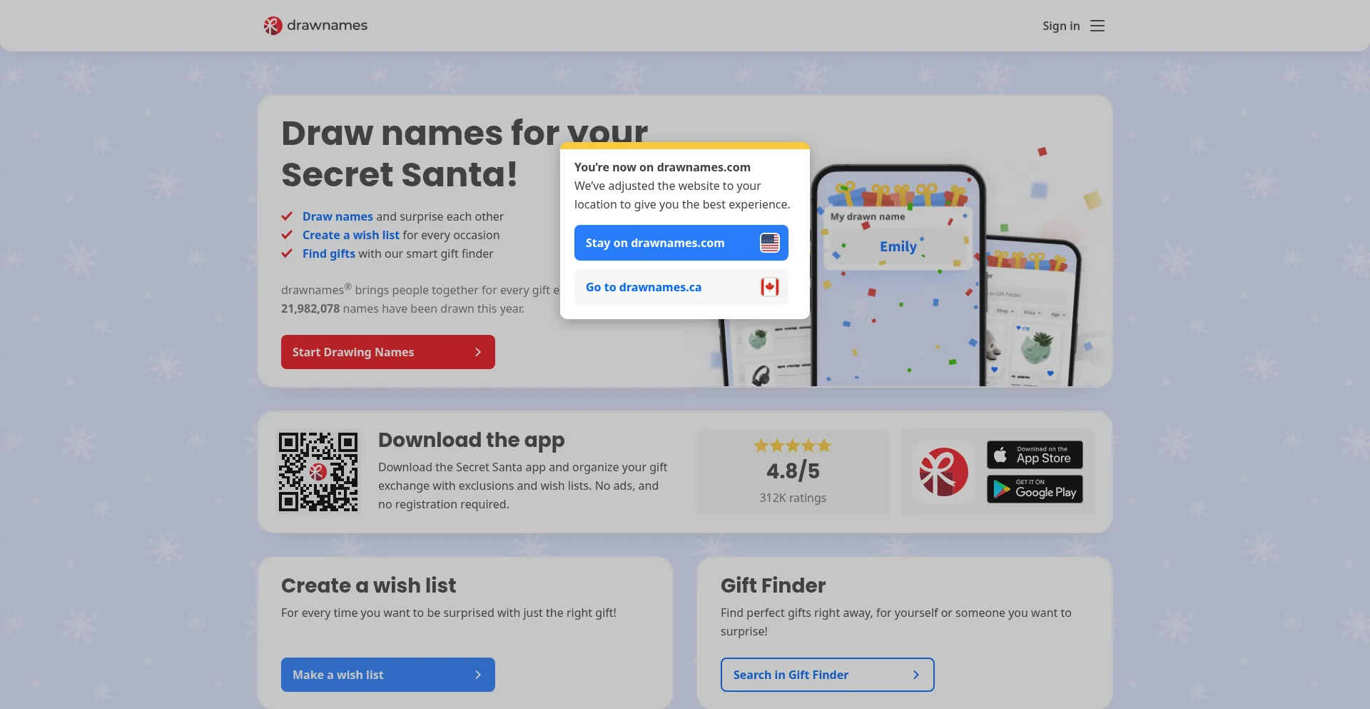 drawnames | Wish Lists, Secret Santa, Gift Finder