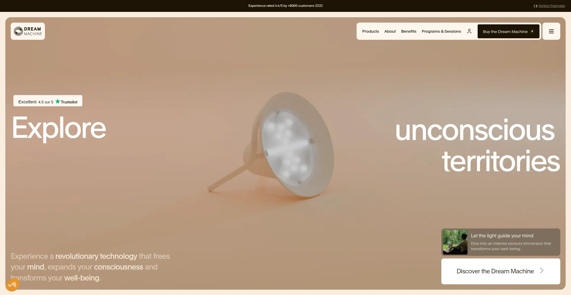 Revolutionary technology for exploring new states of consciousness. Let yourself be carried away by an immersive experience, somewhere between dream and reality. Deep relaxation...
