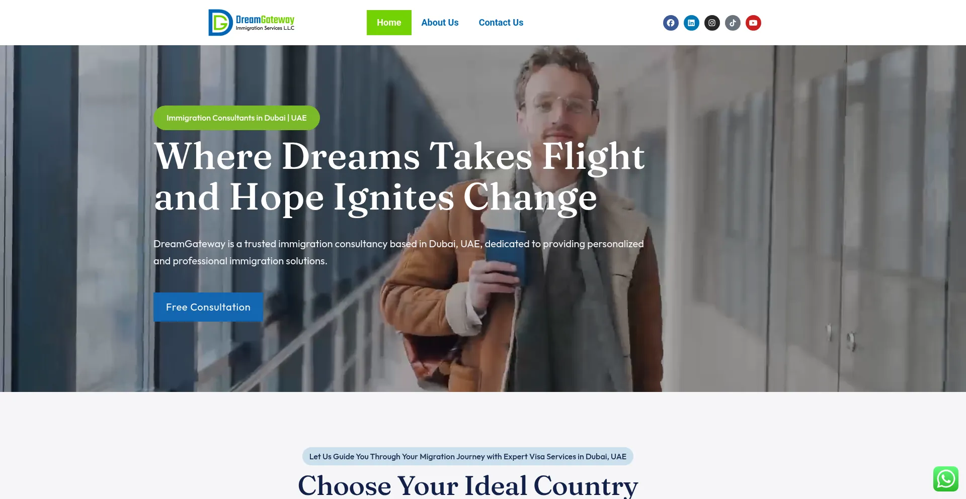 网站上存在社交媒体链接表明 dreamgateway.ae 在社交媒体上维护官方账户,这是可信度和参与度的积极信号。