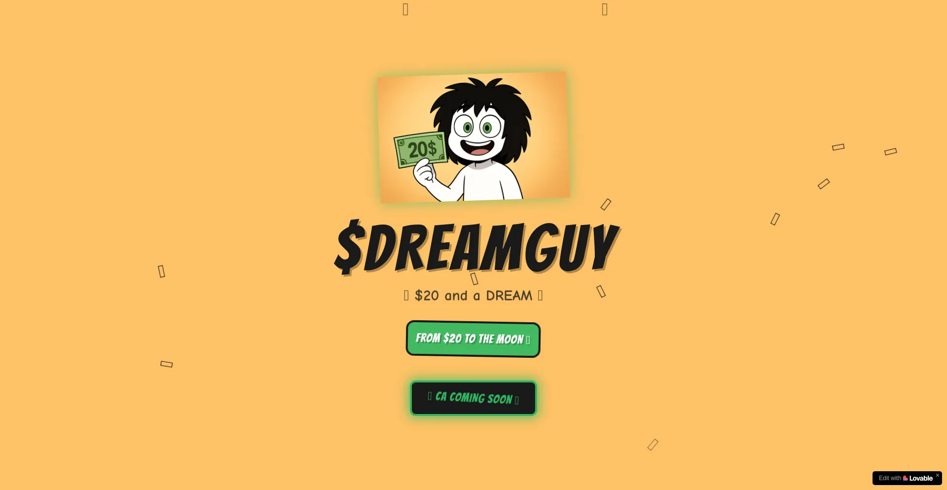 $DREAMGUY - The meme coin that started with $20 and a dream. Join us on our journey to the moon on Solana!