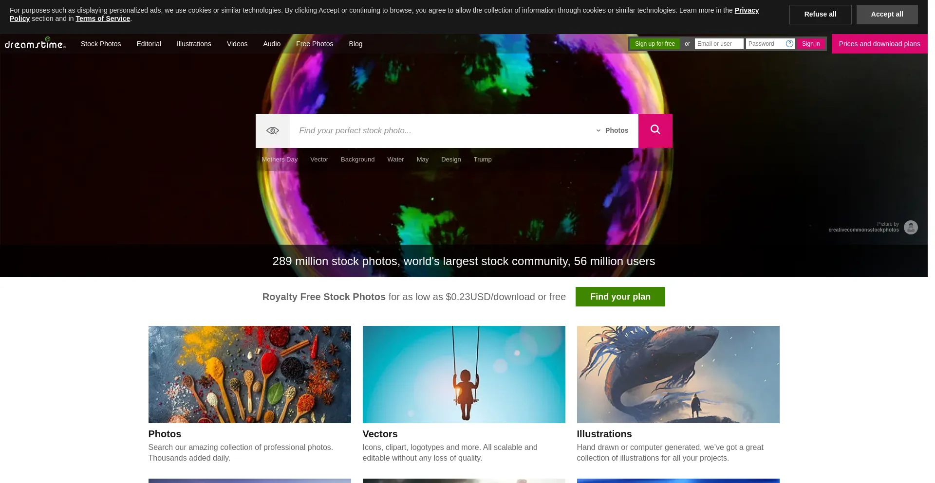 该网站实现符合GDPR或CCPA等隐私法规的cookie同意机制。这表明 dreamstime.com 遵守数据保护标准并为用户提供对个人数据收集实践的控制。
