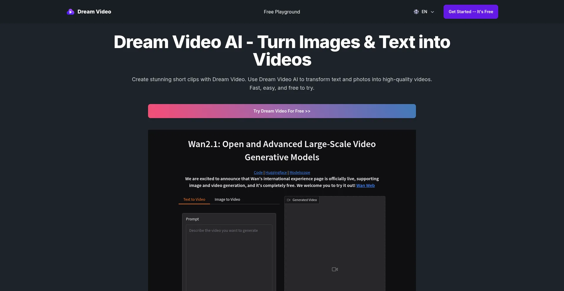 Dream Video Generator lets you create high-quality videos from images or text. Try Dream Video AI for fast, powerful, and creative video generation.