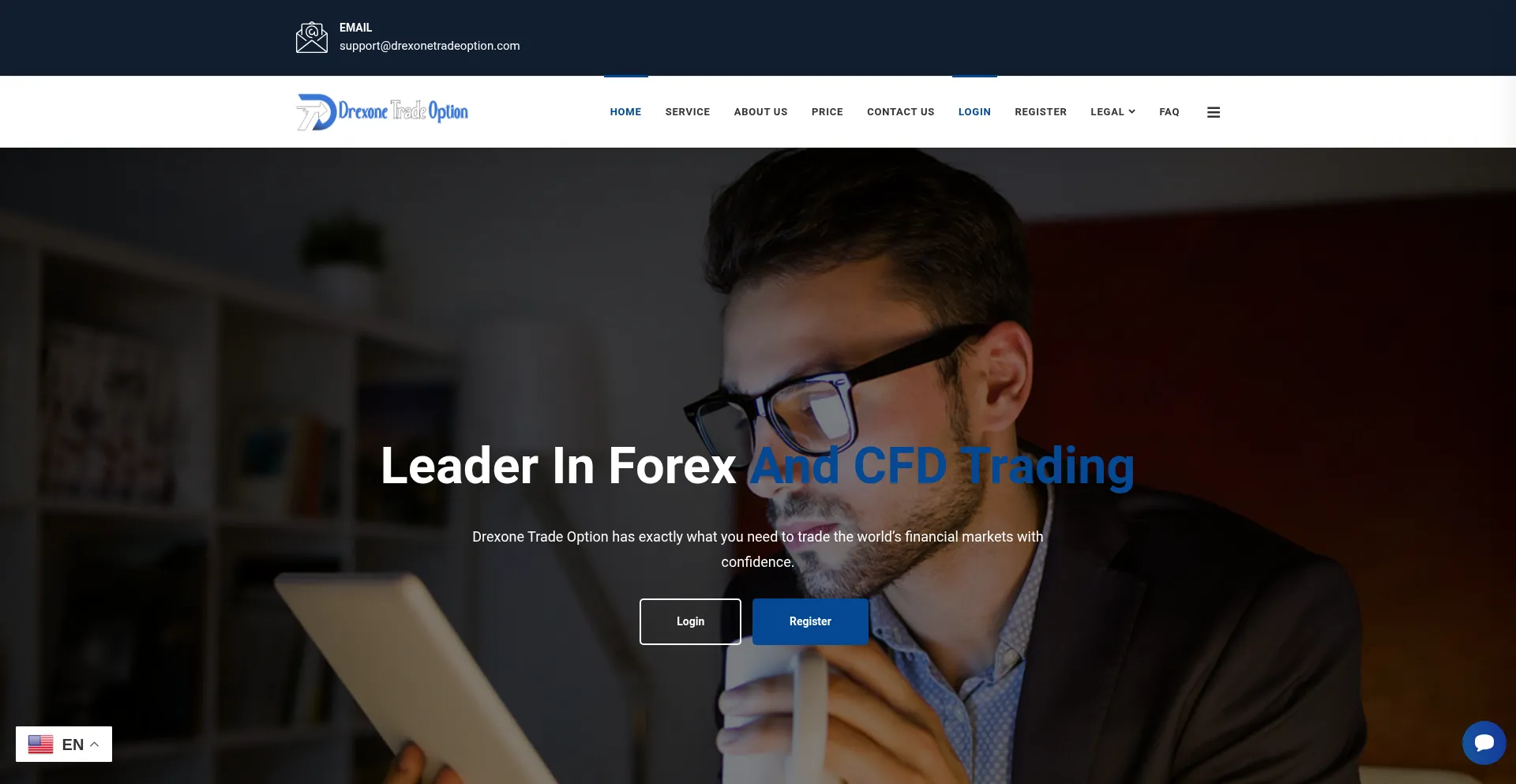 该网站实现数据收集表单,请求个人信息,包括姓名、电子邮件地址、电话号码或其他敏感详细信息。用户应验证 drexonetradeoption.com 的合法性并在提交个人数据前查看隐私政策。