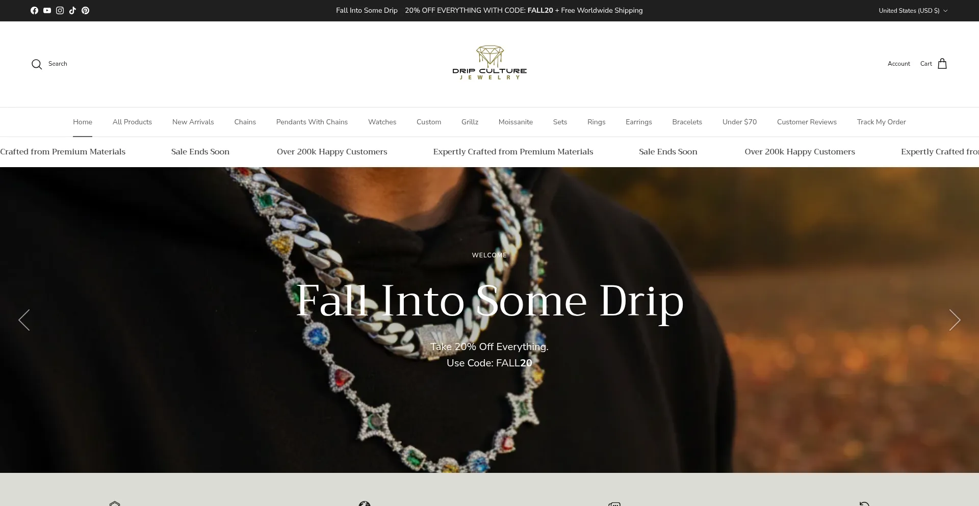 Drip Culture Jewelry offers premium quality hip hop jewelry inspired by urban culture. Shop the best iced out jewelry, hip hop chains, Cuban link chains, gold chains, custom pen...