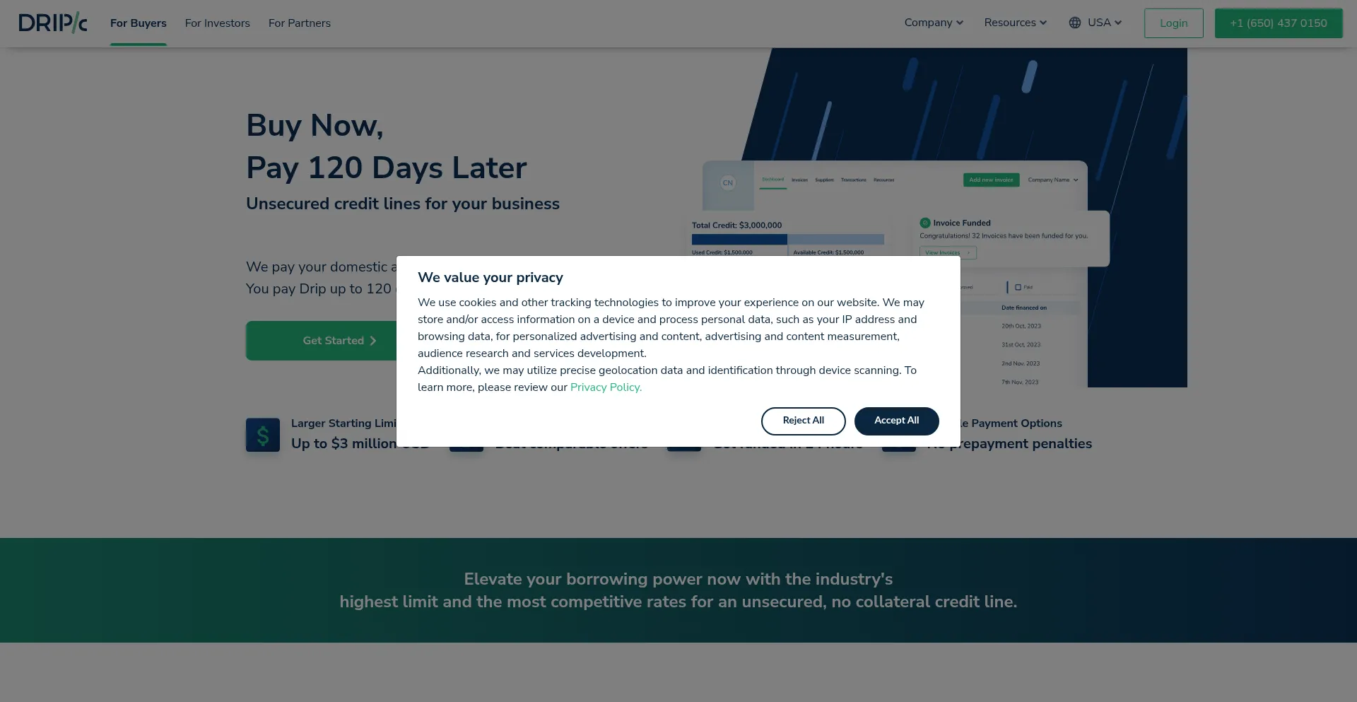 该网站实现符合GDPR或CCPA等隐私法规的cookie同意机制。这表明 dripcapitalmail.com 遵守数据保护标准并为用户提供对个人数据收集实践的控制。