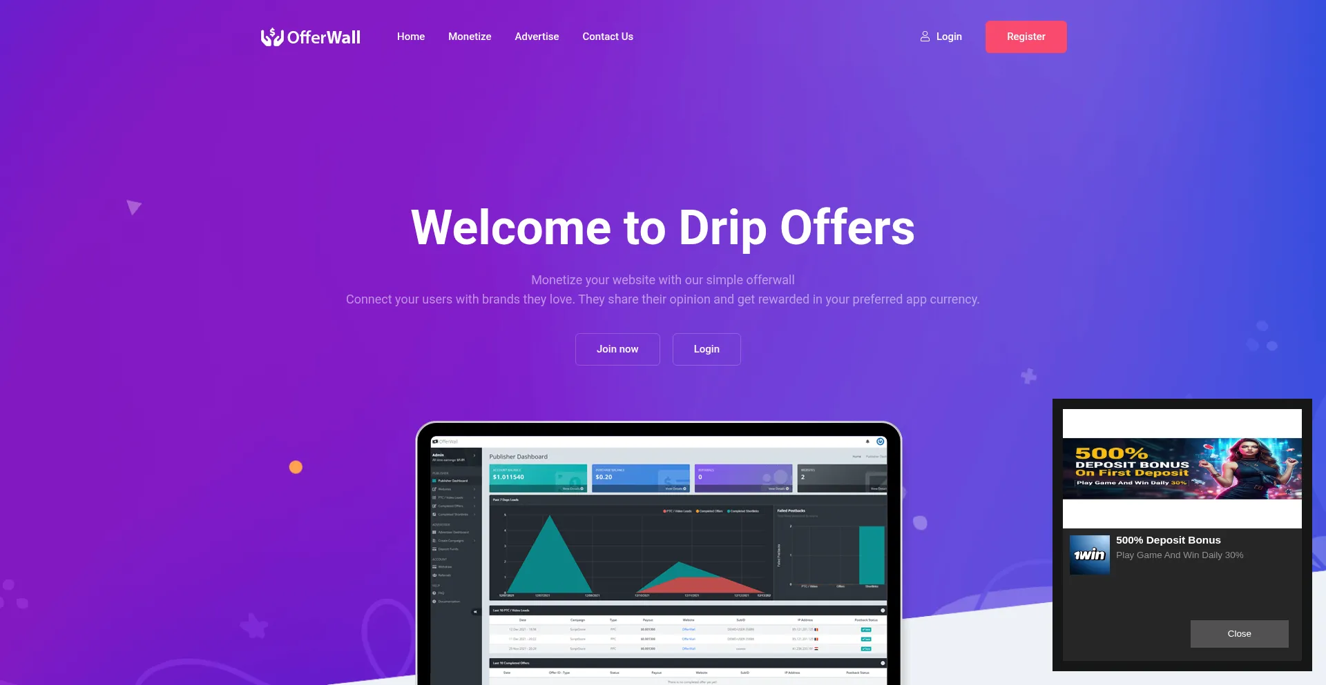 dripoffers.com 使用 Bootstrap,这是一个广泛采用的开源响应式网页开发框架。Bootstrap 通过标准化组件和样式实现移动友好界面的高效创建。