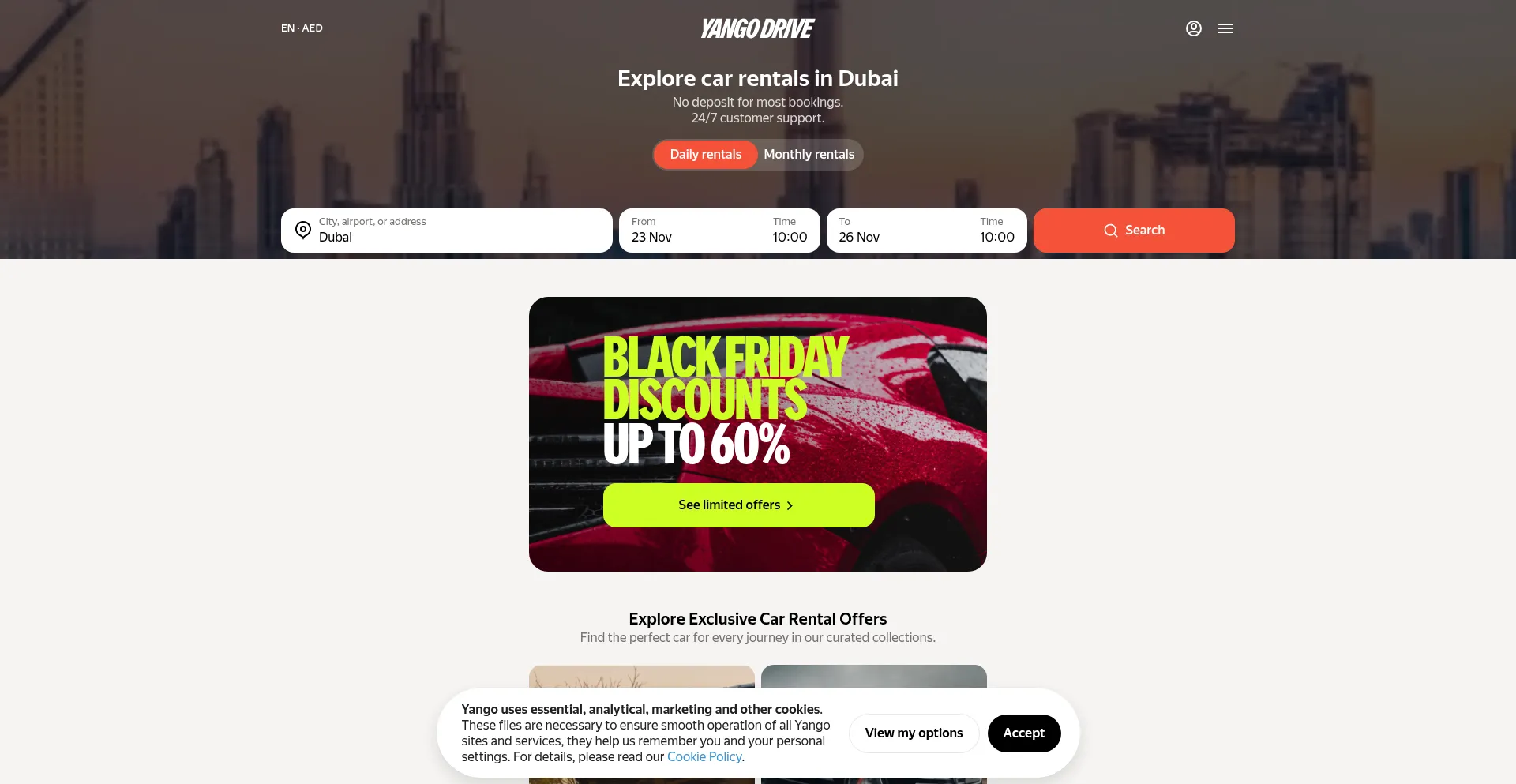 该网站实现符合GDPR或CCPA等隐私法规的cookie同意机制。这表明 drive.yango.com 遵守数据保护标准并为用户提供对个人数据收集实践的控制。