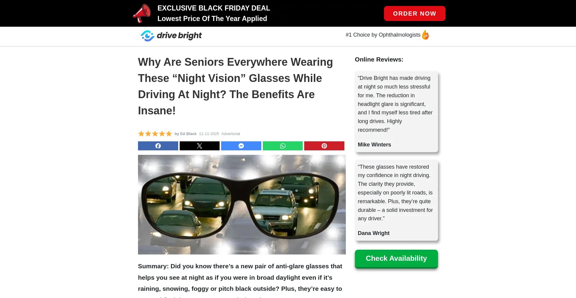 网站上存在社交媒体链接表明 drivebrightglasses.com 在社交媒体上维护官方账户,这是可信度和参与度的积极信号。
