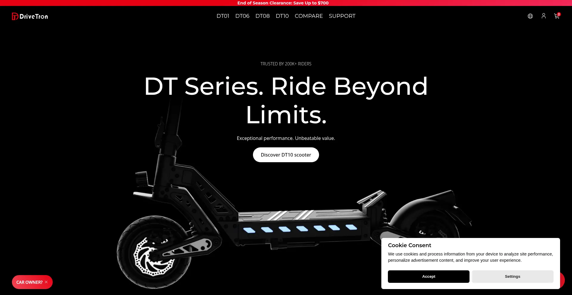 该网站实现符合GDPR或CCPA等隐私法规的cookie同意机制。这表明 drivetronscooter.com 遵守数据保护标准并为用户提供对个人数据收集实践的控制。