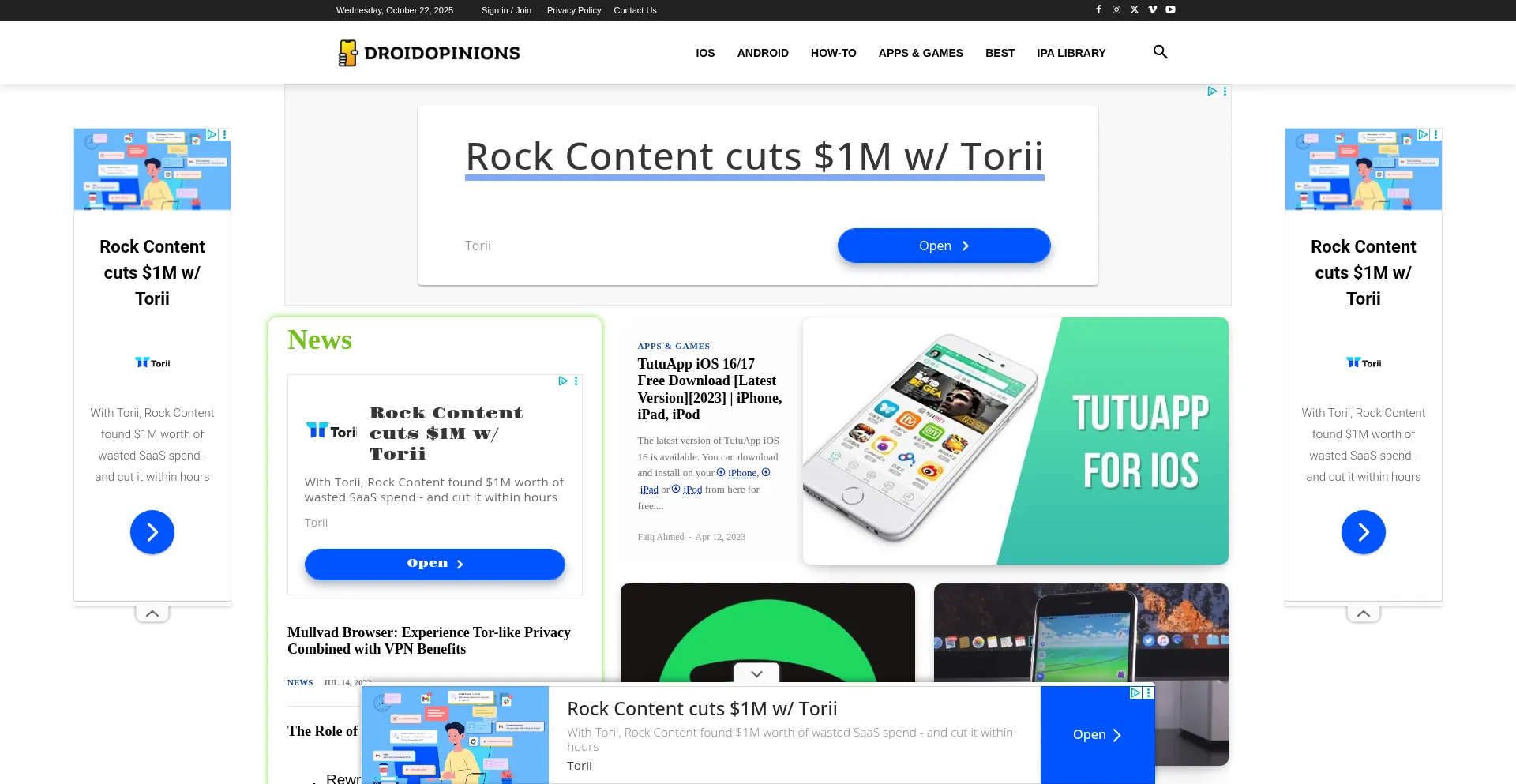 网站上存在社交媒体链接表明 droidopinions.com 在社交媒体上维护官方账户,这是可信度和参与度的积极信号。