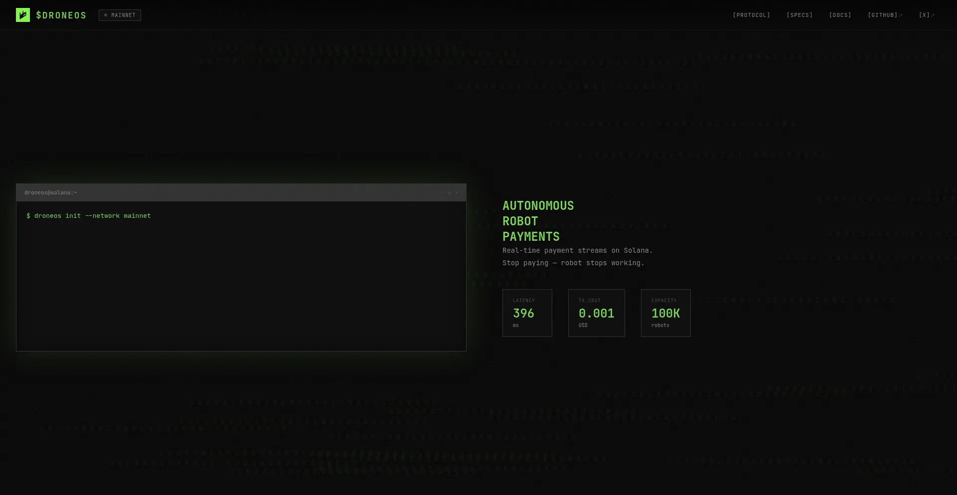 Real-time payment streams for autonomous robots. Built on Solana.