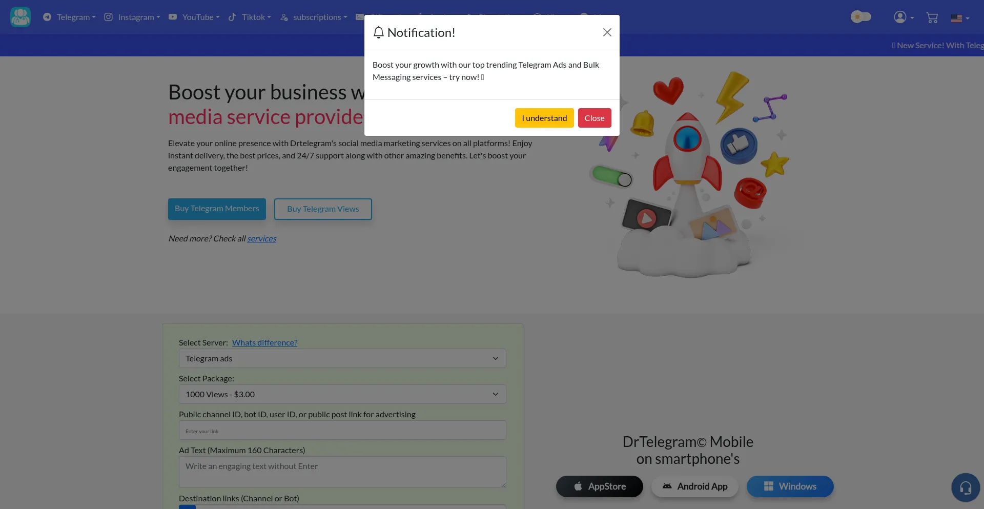 Buy Members, Views, Reactions, Votes, Subscribers, etc., from Drtelegram. We are providing social media marketing services at affordable prices.