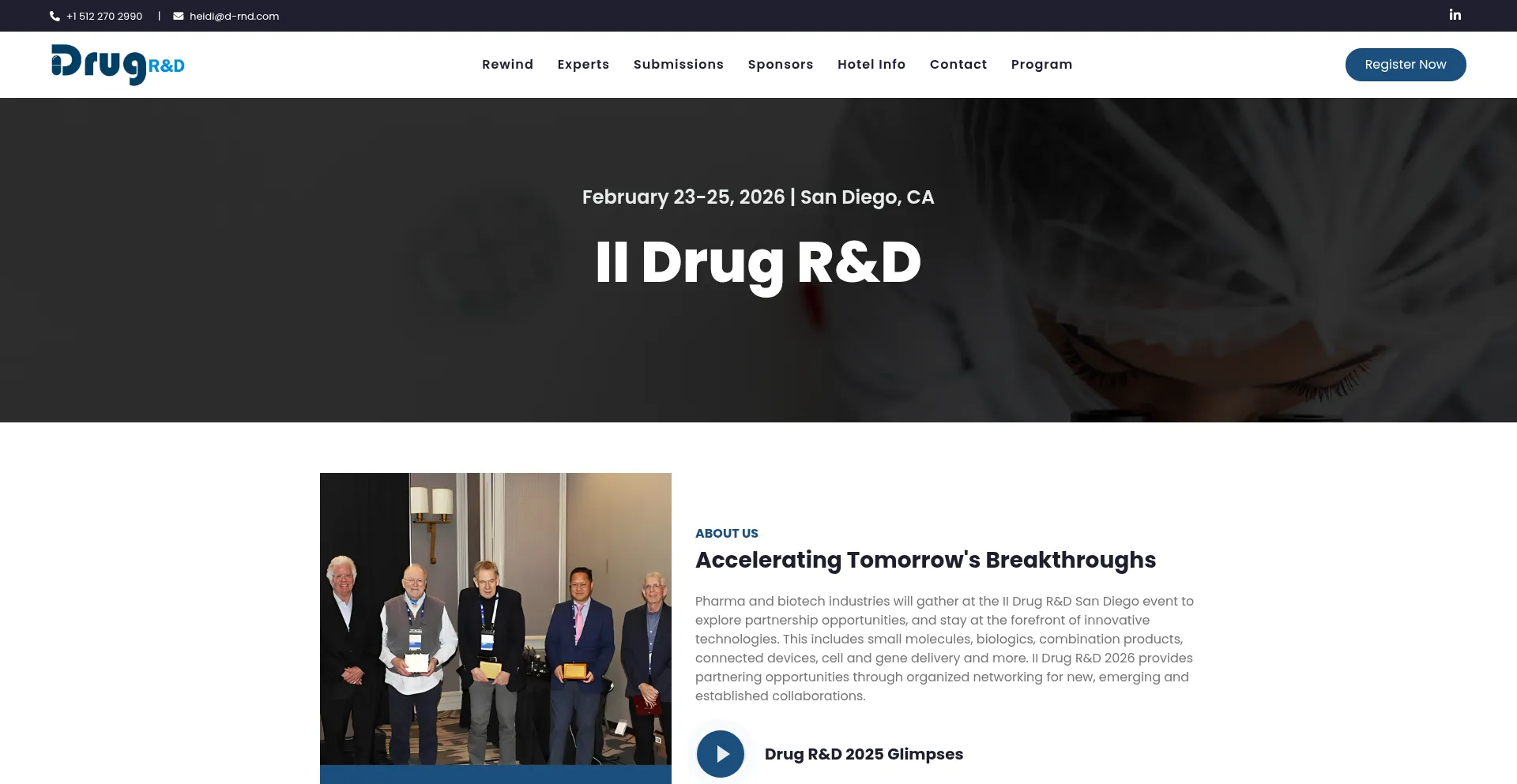 该网站实现数据收集表单,请求个人信息,包括姓名、电子邮件地址、电话号码或其他敏感详细信息。用户应验证 drug-researchdevelopment.com 的合法性并在提交个人数据前查看隐私政策。