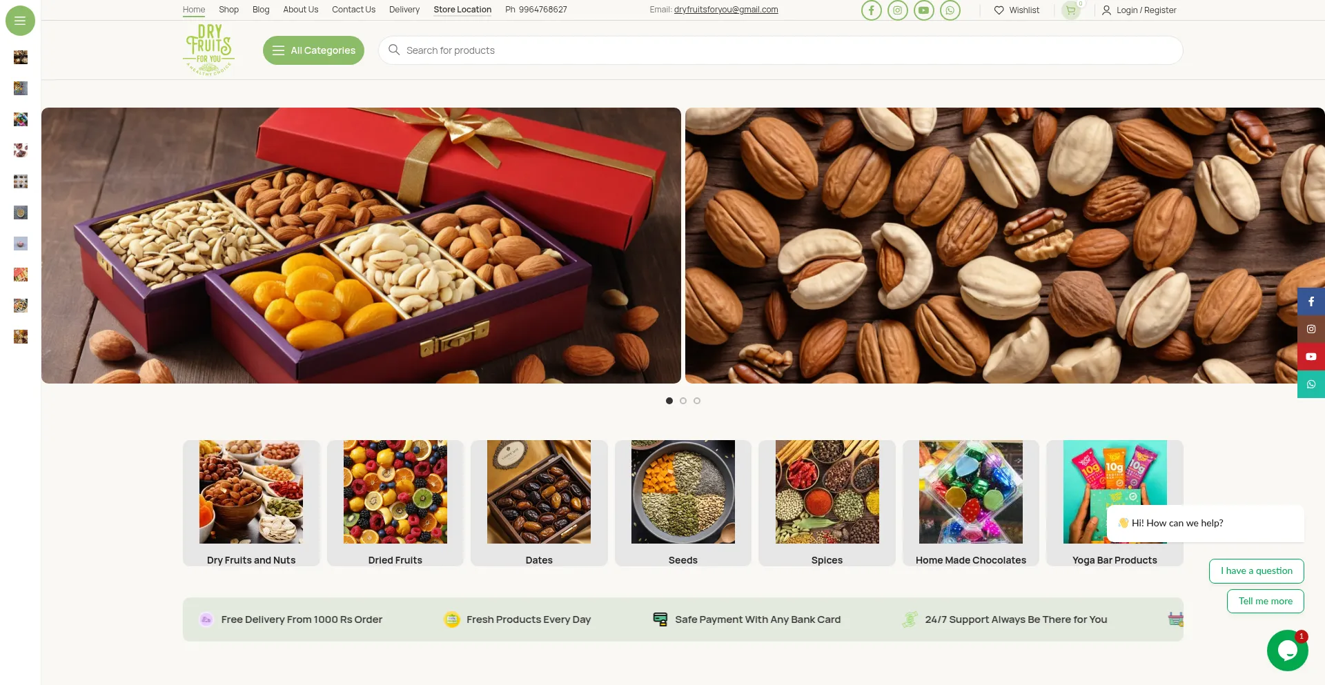 网站上存在社交媒体链接表明 dryfruitsforyou.com 在社交媒体上维护官方账户,这是可信度和参与度的积极信号。