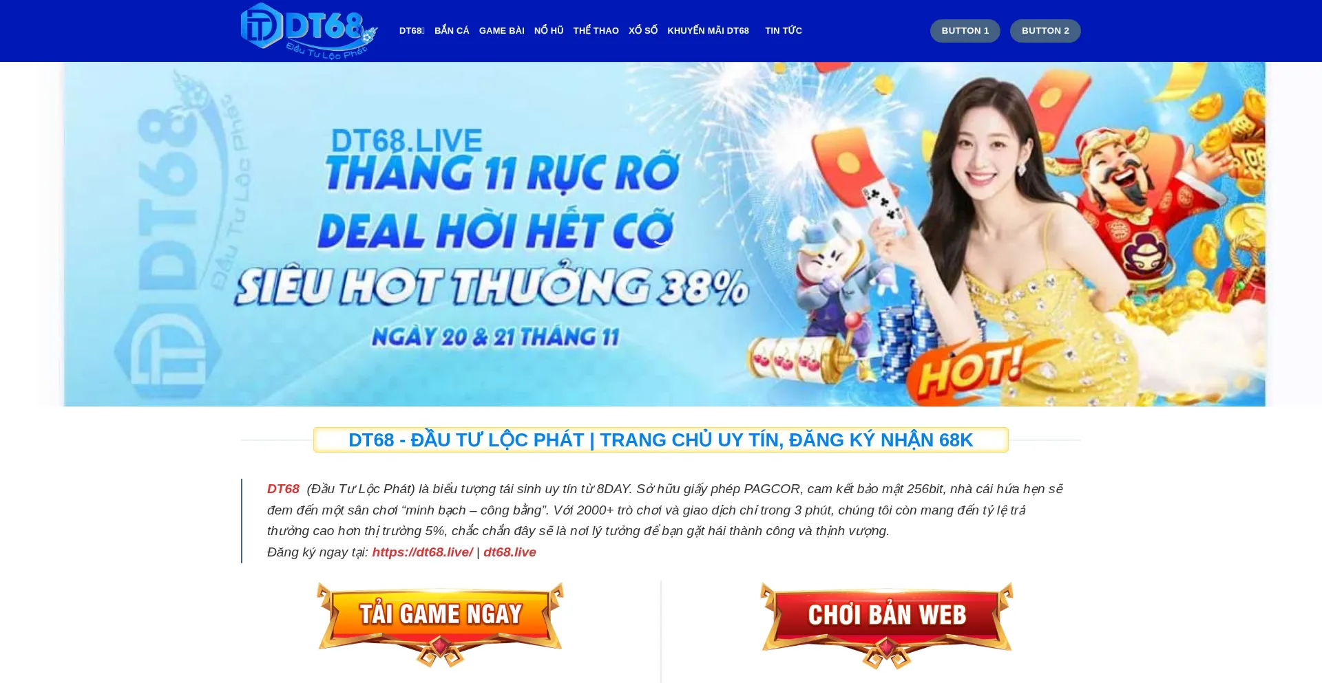 DT68 khẳng định vị thế với 10 năm kinh nghiệm và kế thừa tới 10 triệu thành viên hoạt động. Truy cập và làm giàu ngay với kho game từ th�...