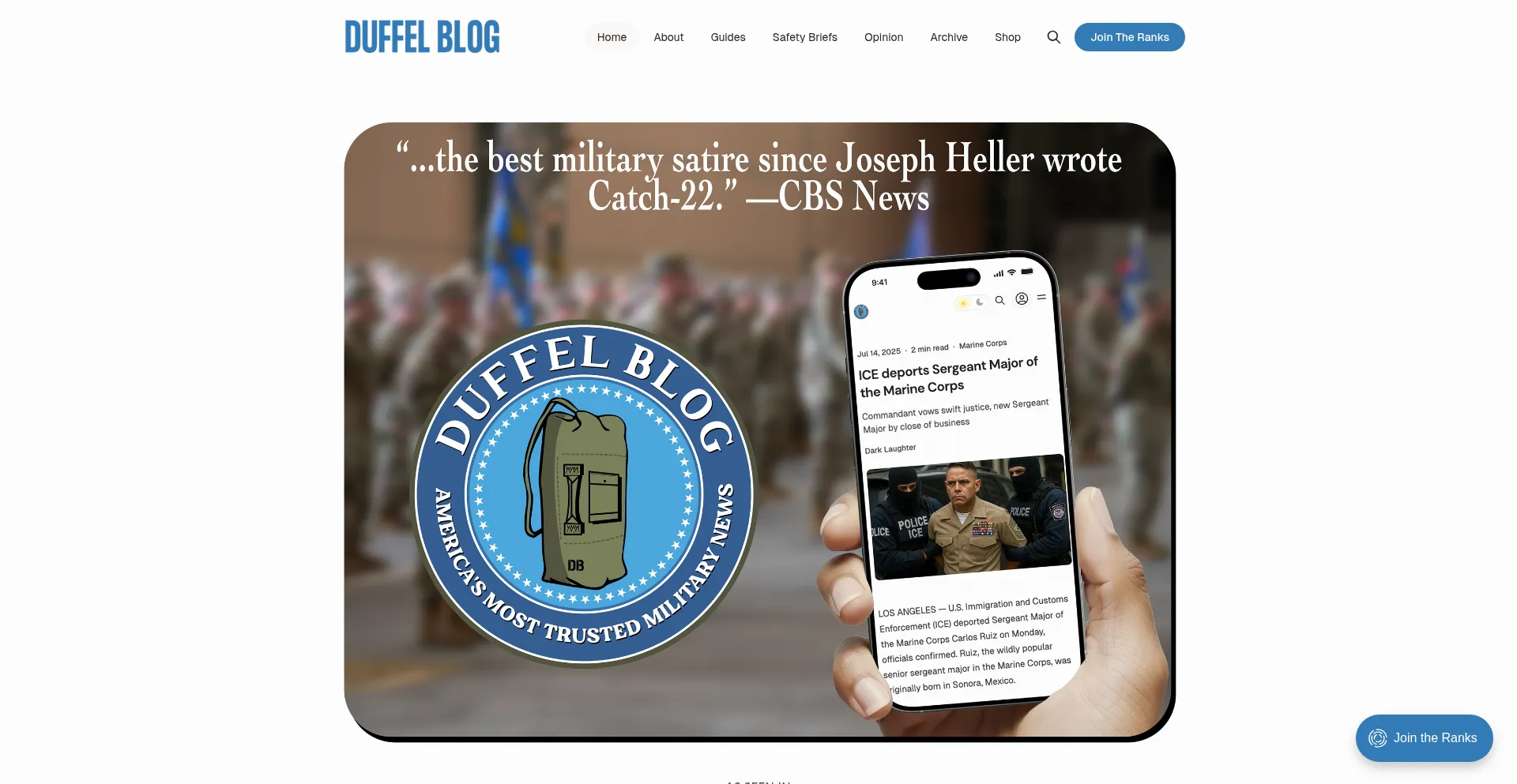 该网站实现数据收集表单,请求个人信息,包括姓名、电子邮件地址、电话号码或其他敏感详细信息。用户应验证 duffelblog.com 的合法性并在提交个人数据前查看隐私政策。